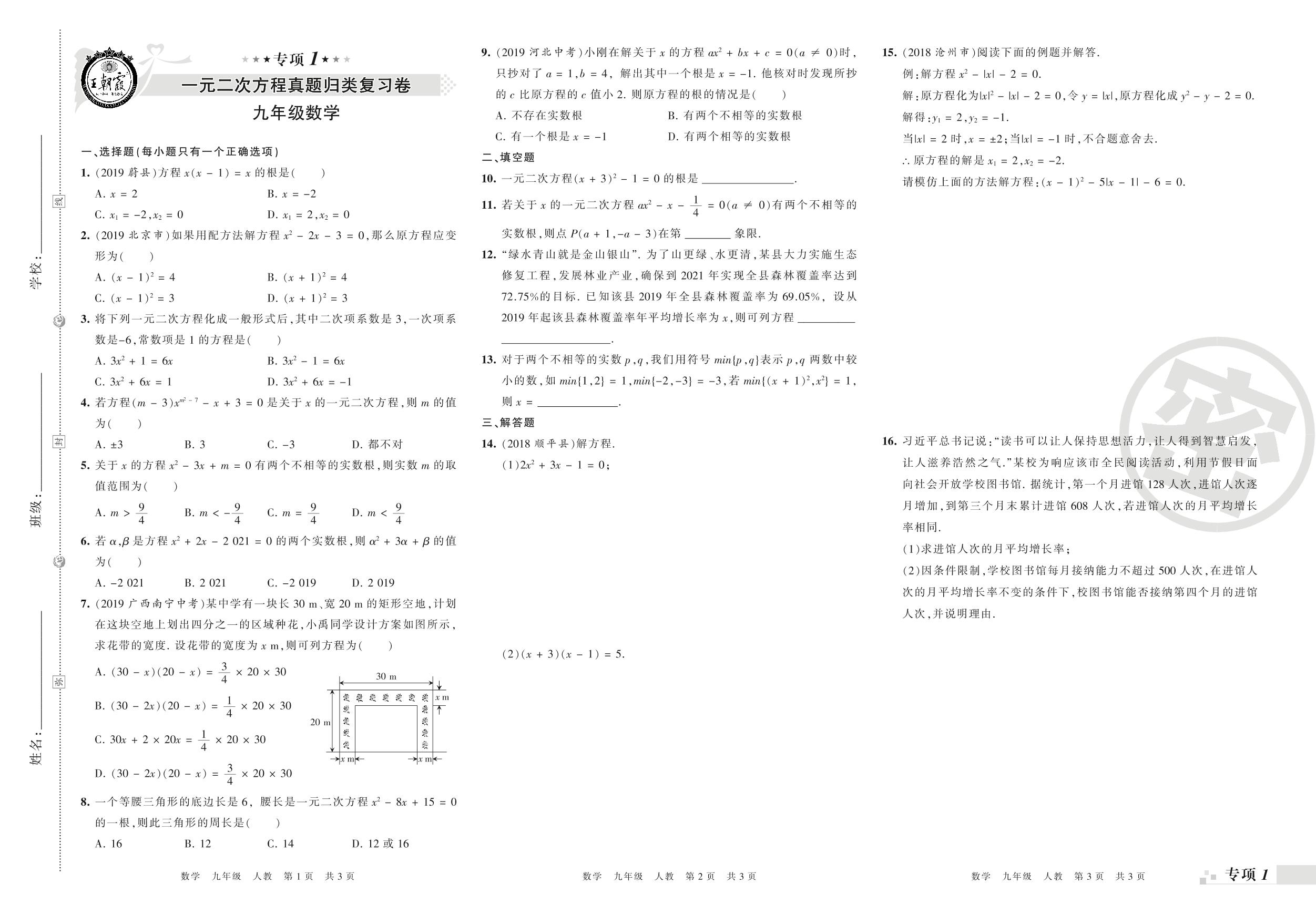王朝霞期末专项卷——一元二次方程、二次函数的图象与性质真题归类复习九年级上册数学(人教版)_R210806172150【0】