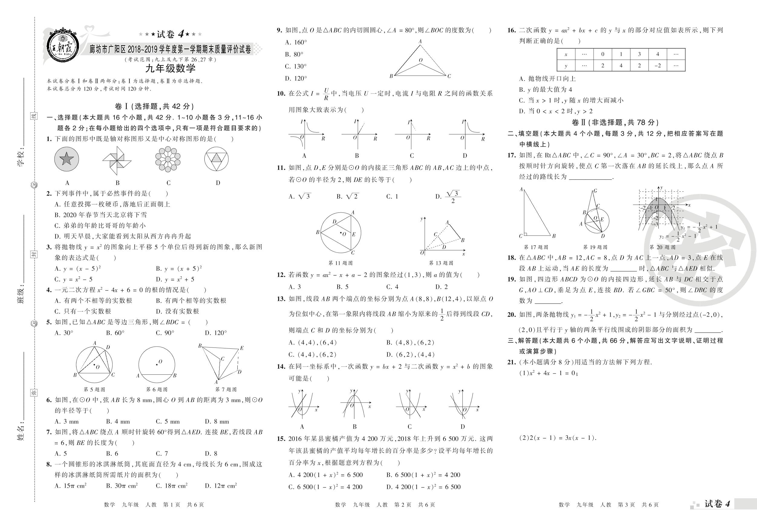 2018-2019学年第一学期廊坊市广阳区九年级数学试卷(人教版)【4】