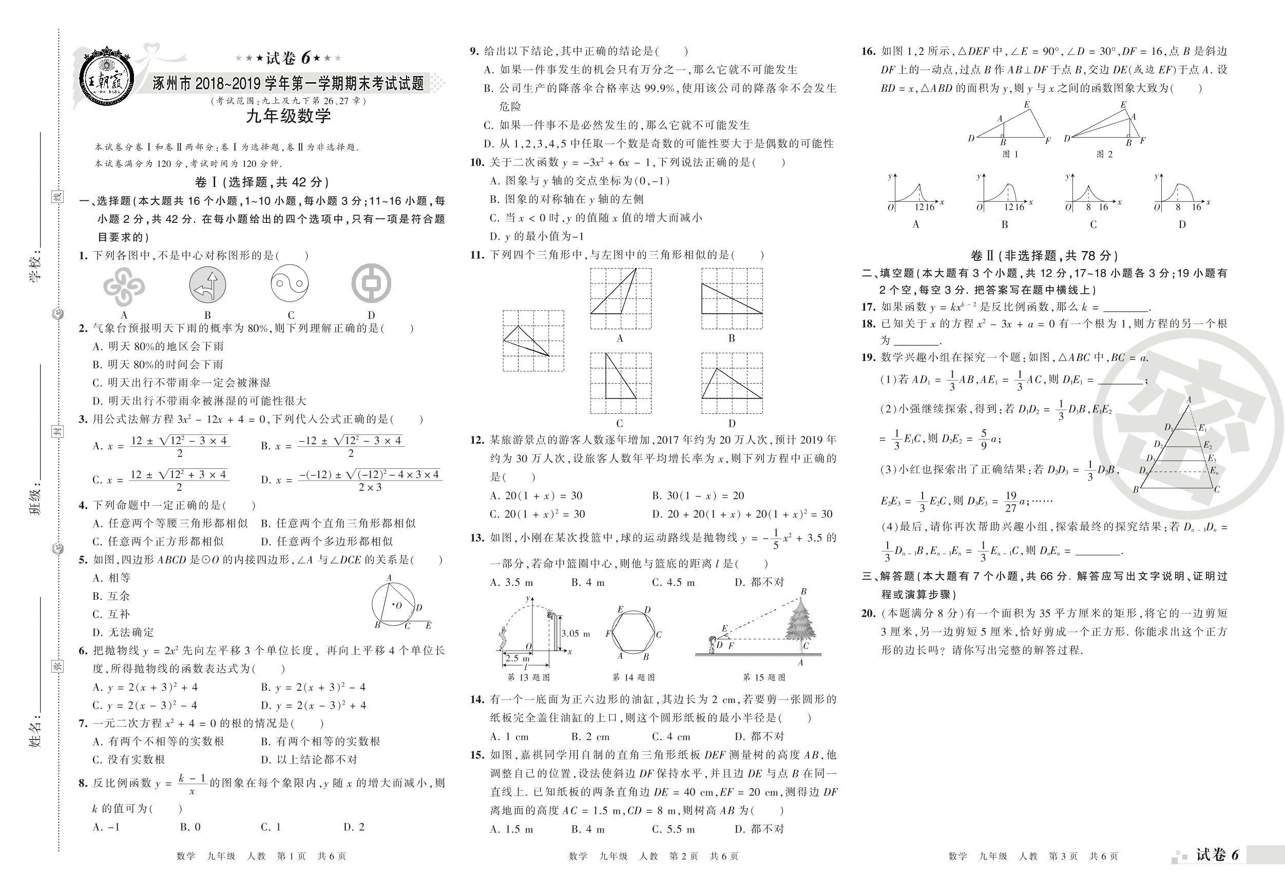 2018-2019学年第一学期涿州市九年级数学试卷(人教版)【6】