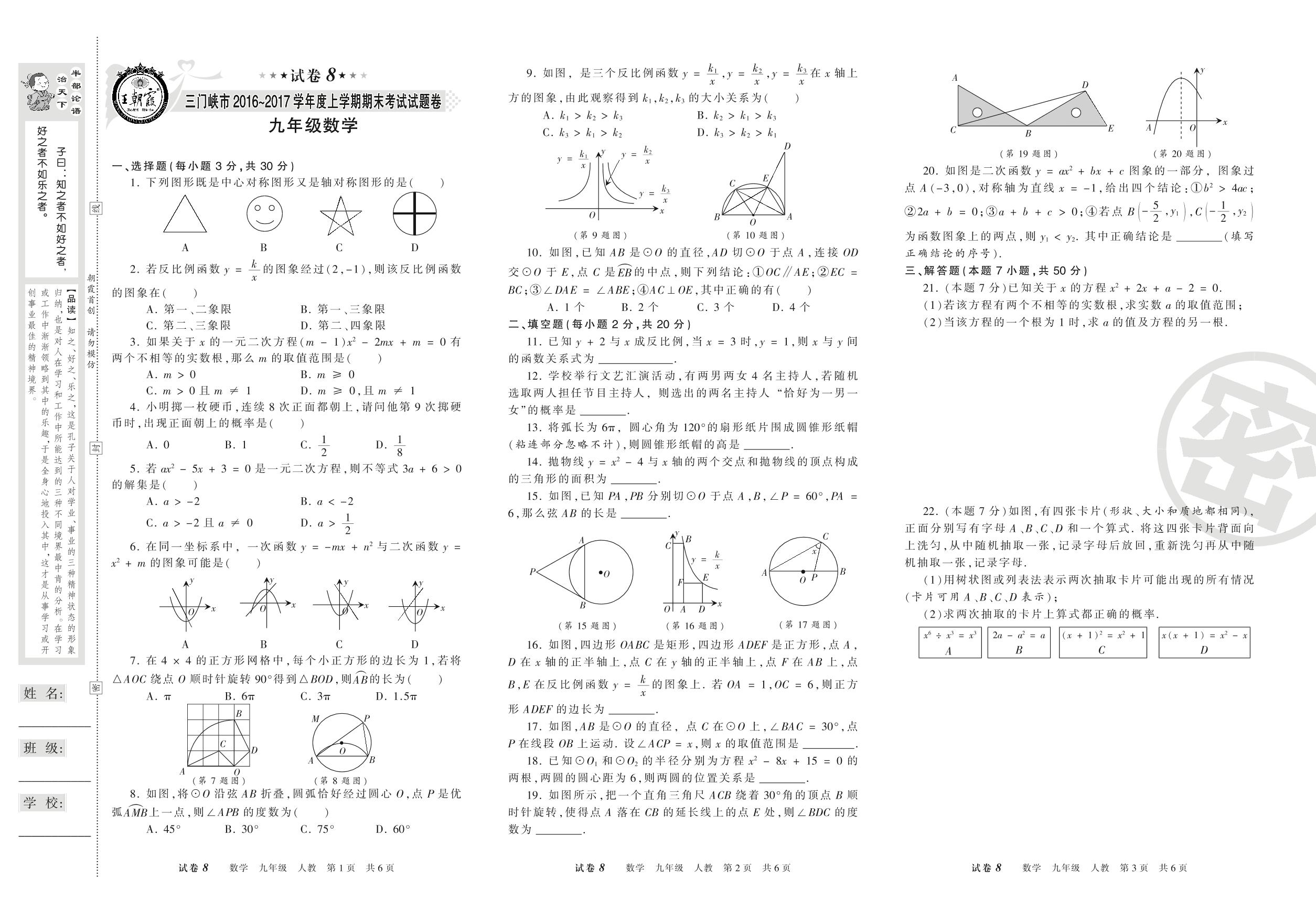2016-2017学年第一学期三门峡市九年级数学试卷(人教版)【8】