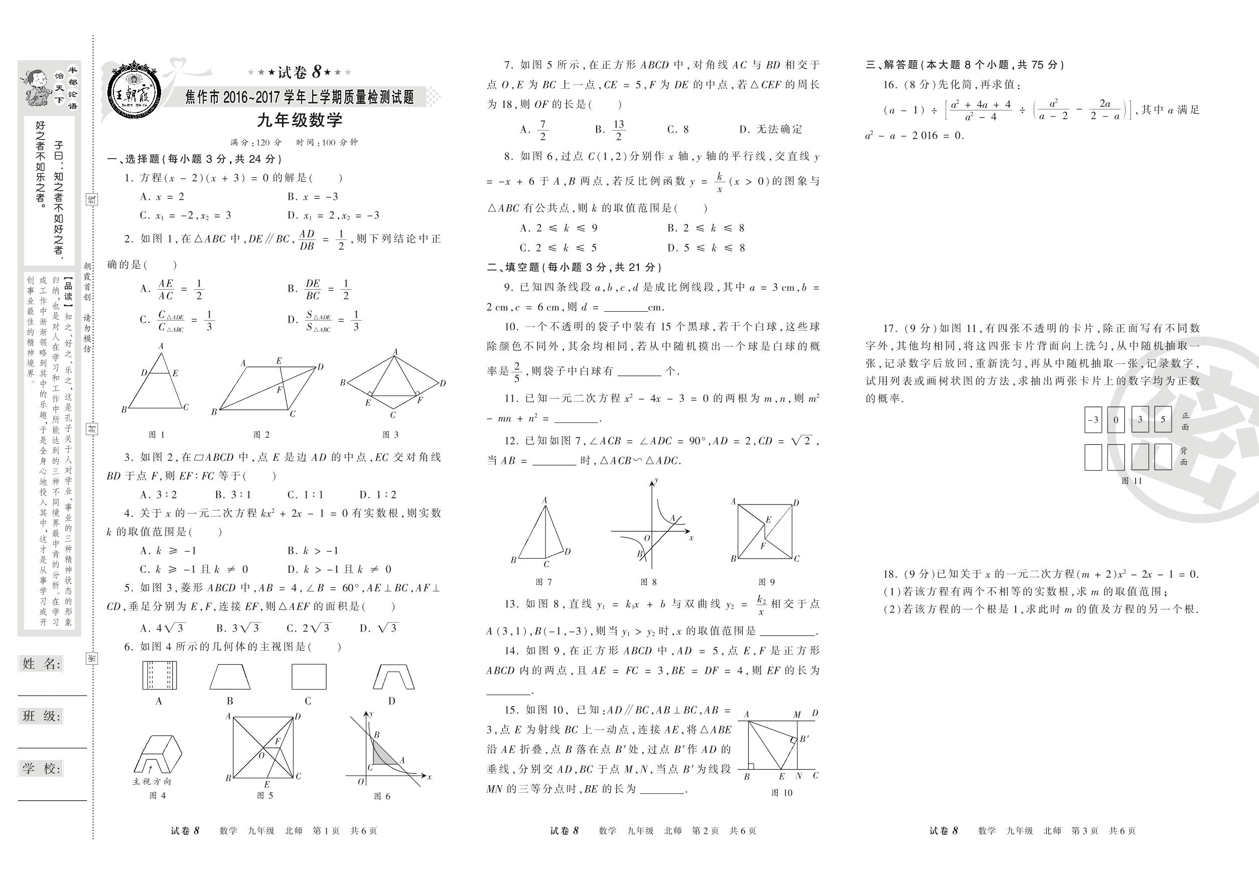 2016-2017学年第一学期焦作市九年级数学试卷(北师版)【8】