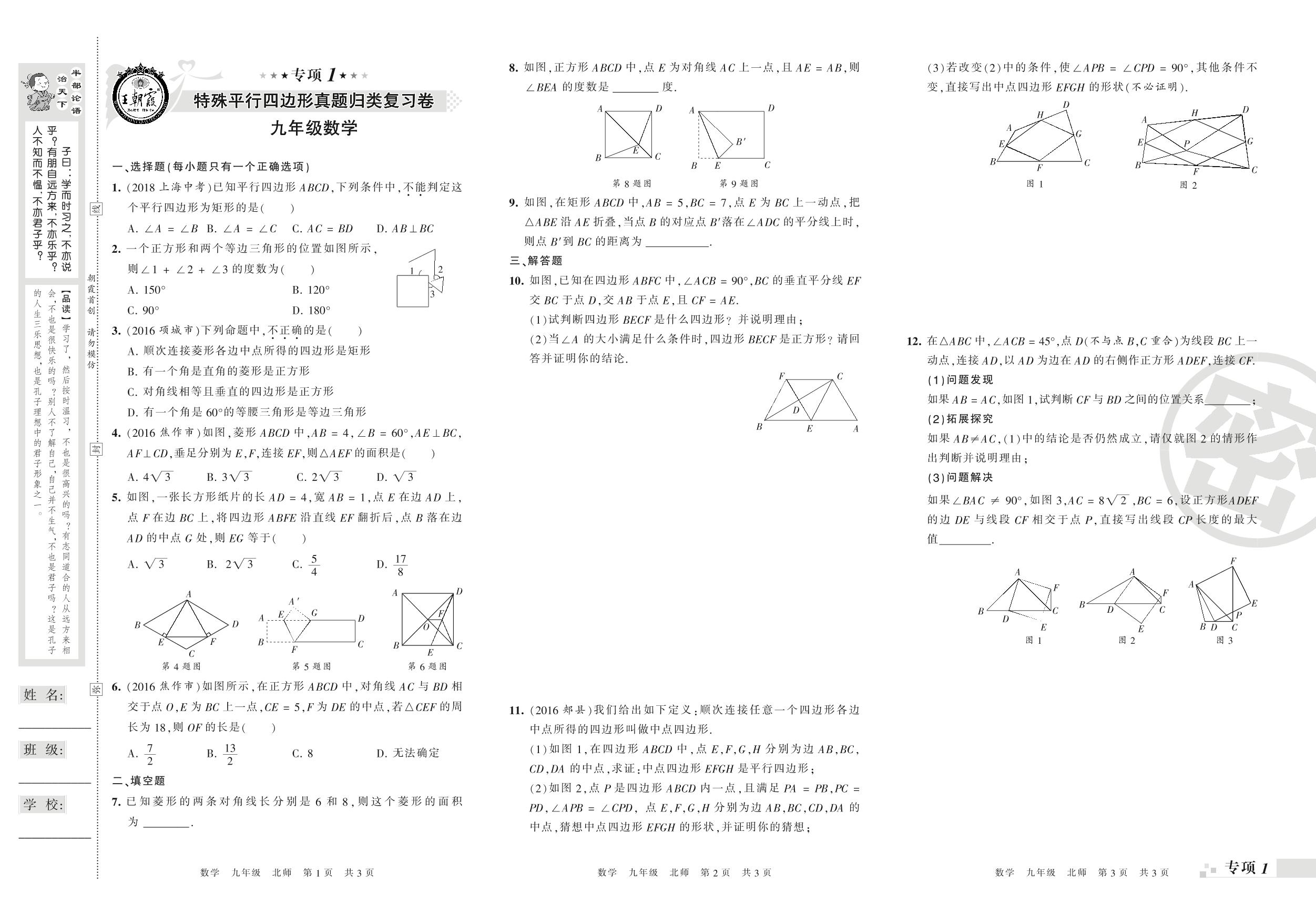 王朝霞期末专项卷——特殊平行四边形、一元二次方程真题归类复习九年级上册数学(北师版)