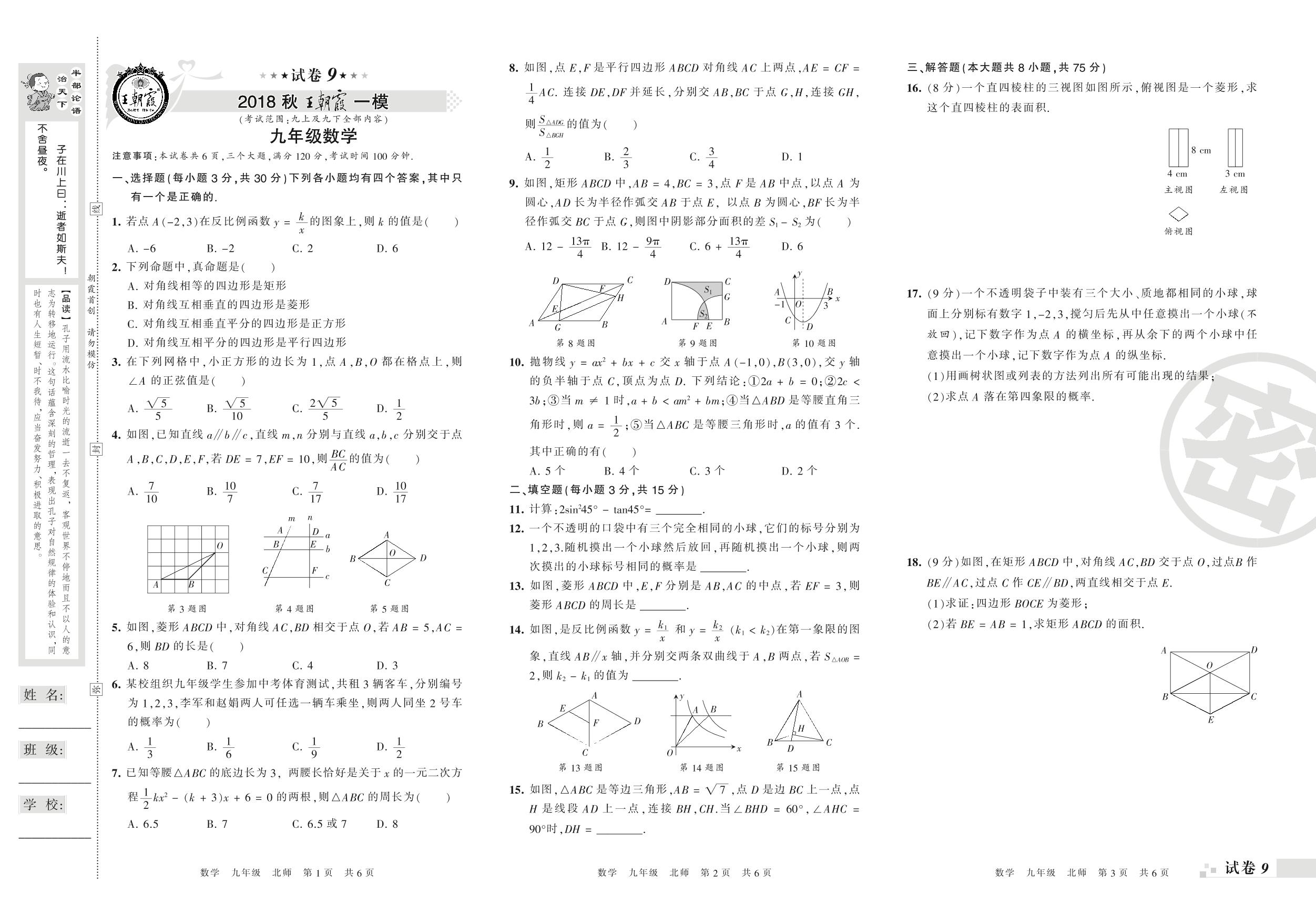 王朝霞期末模拟卷九年级上册数学(北师版)_R210806172951【9】