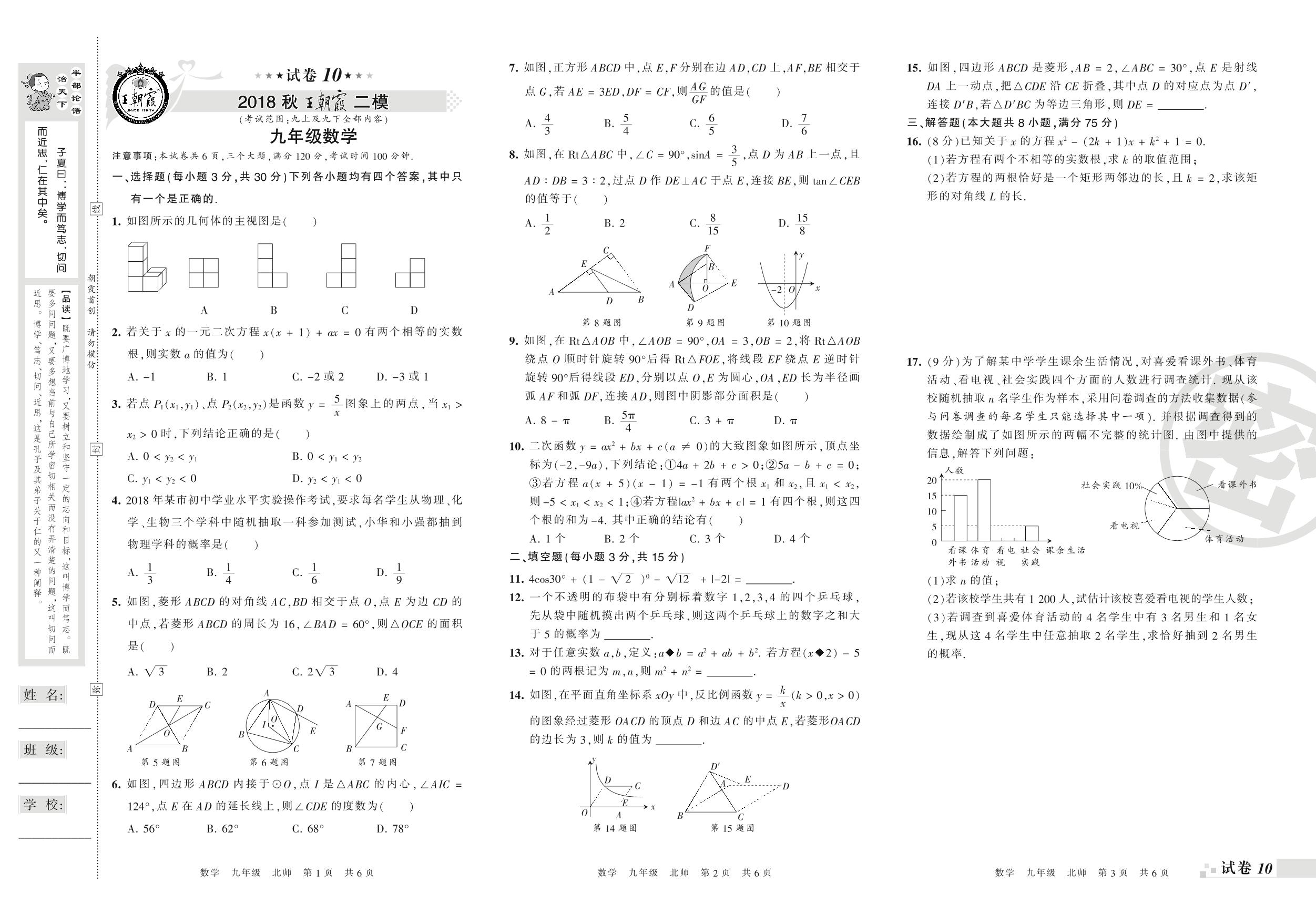 王朝霞期末模拟卷九年级上册数学(北师版)_R210806172957【10】