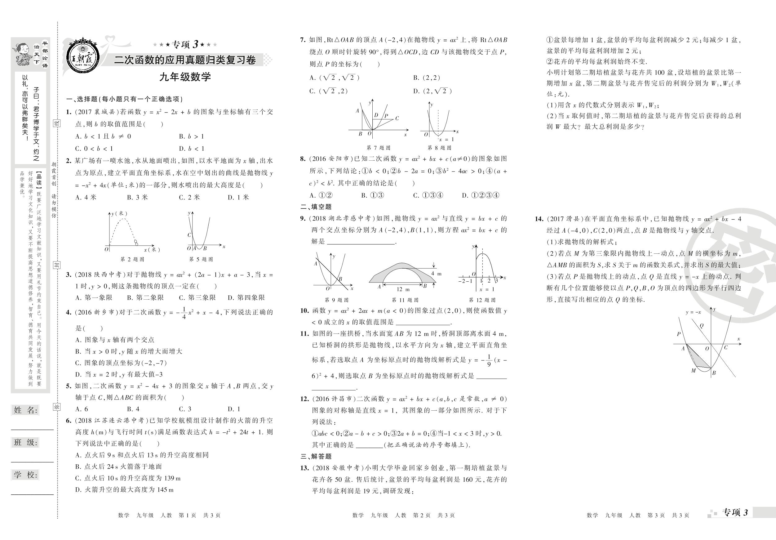 王朝霞期末专项卷——二次函数的应用、旋转真题归类复习九年级上册数学(人教版)