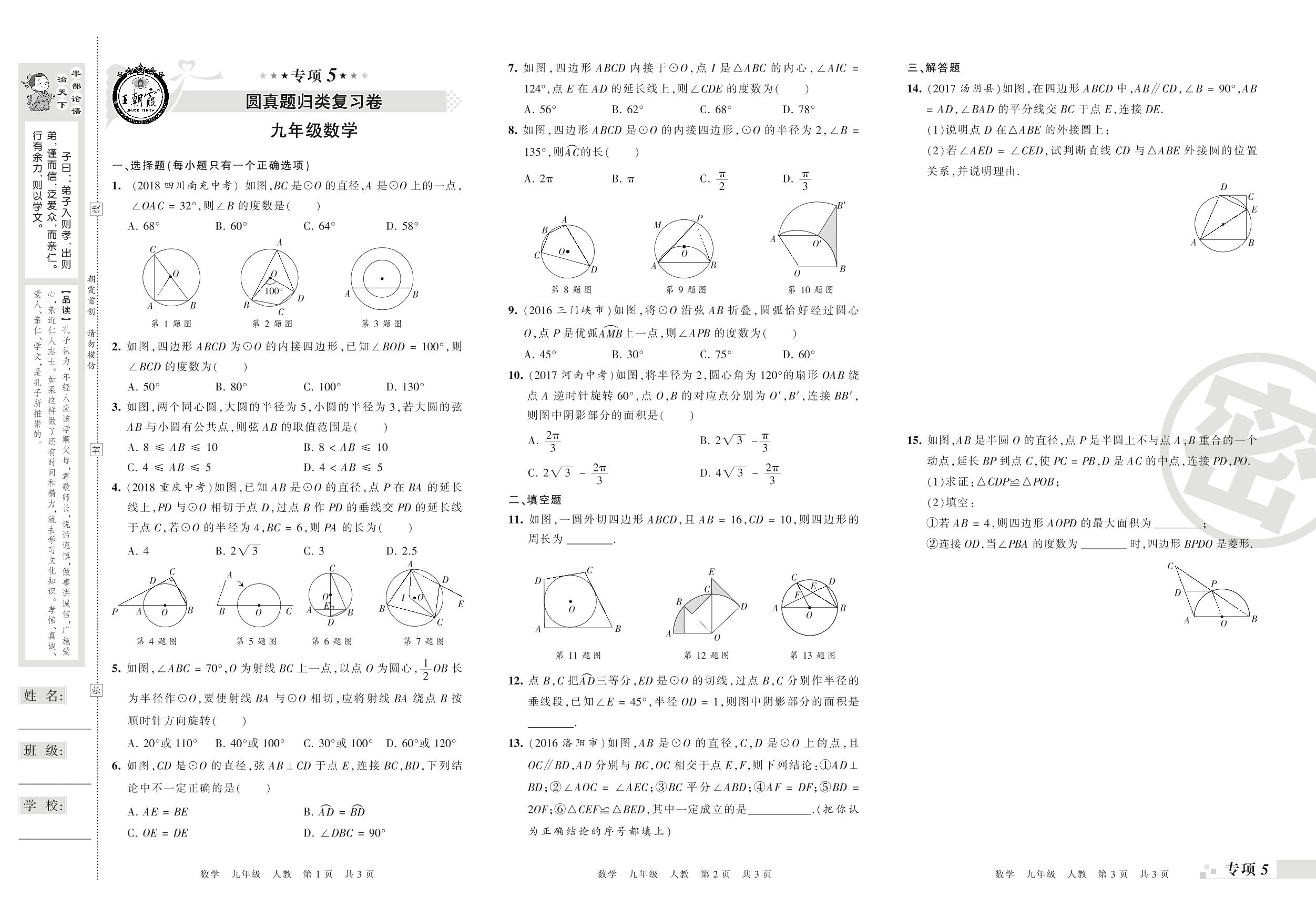 王朝霞期末专项卷——圆、概率初步真题归类复习九年级上册数学(人教版)