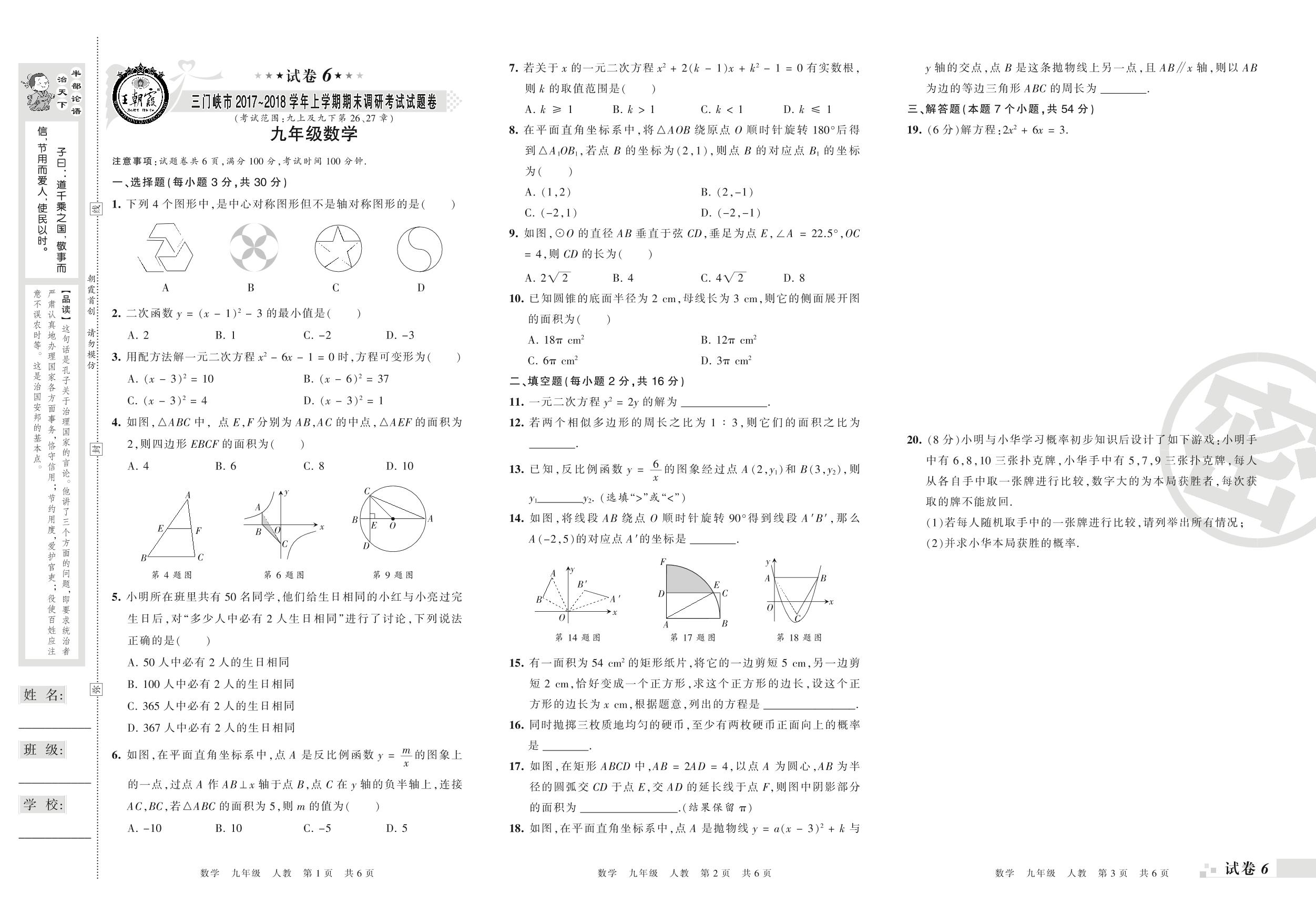 2017-2018学年第一学期三门峡市九年级数学试卷(人教版)【6】