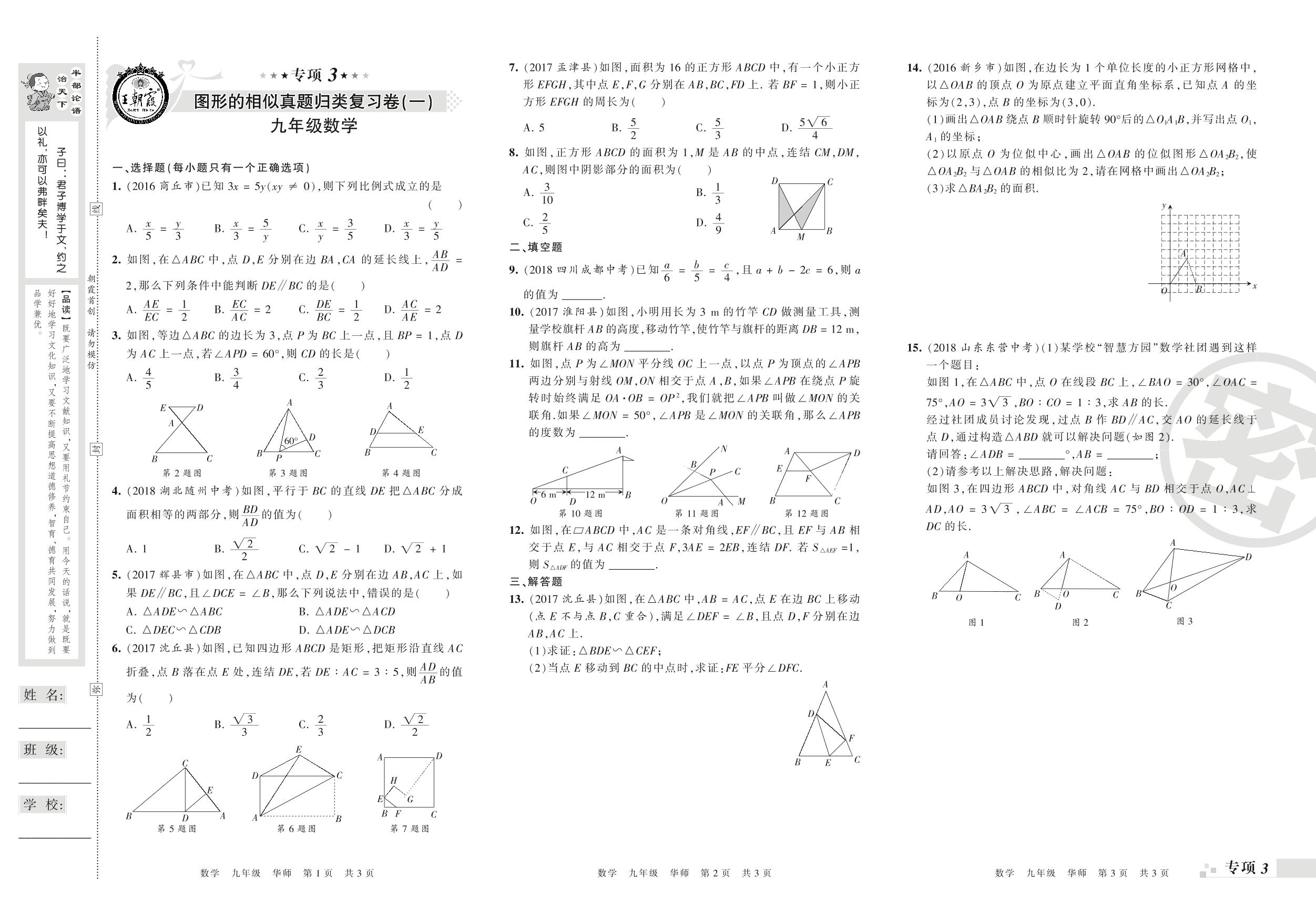 王朝霞期末专项卷——图形的相似真题归类复习九年级上册数学(华师版)