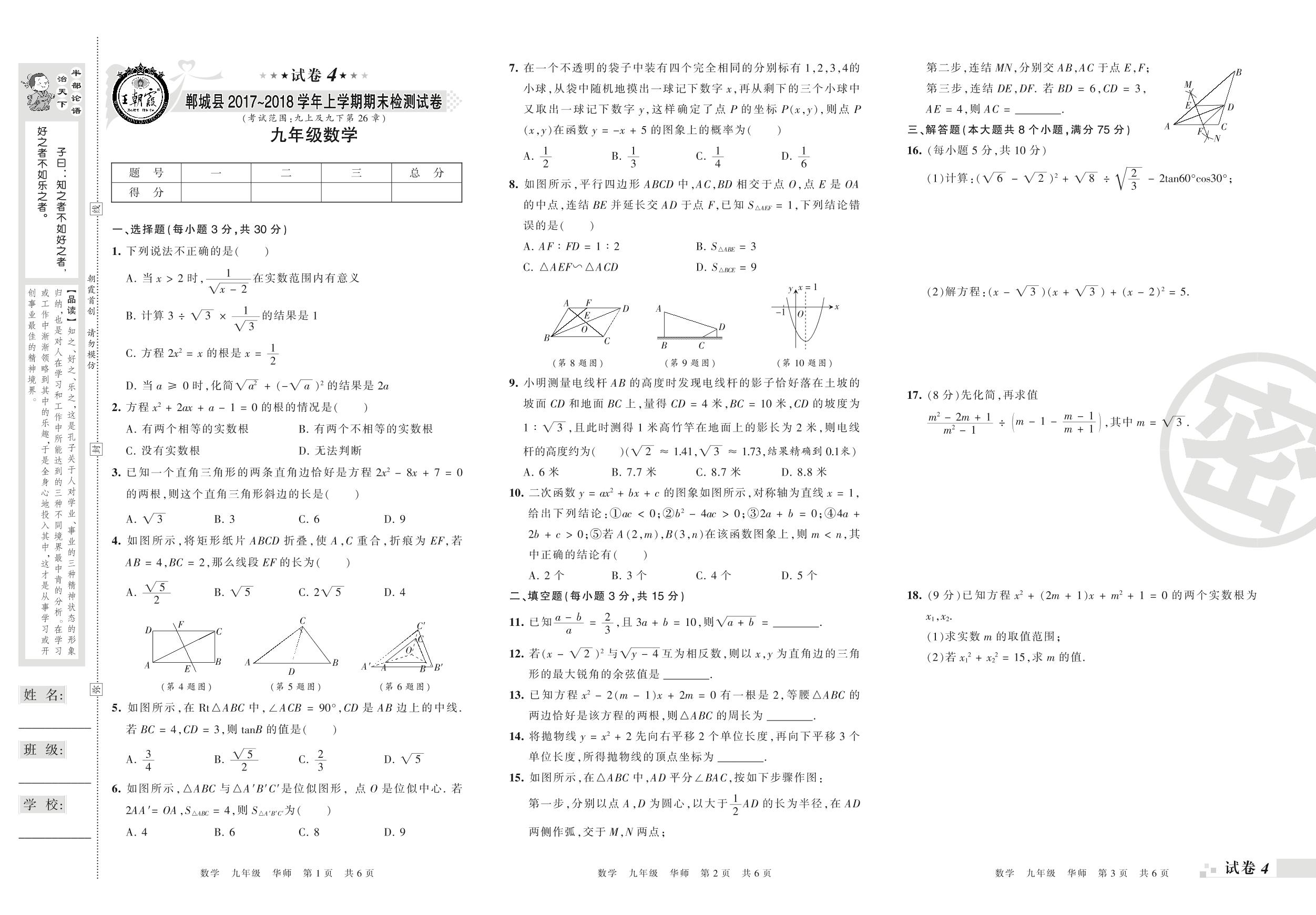 2017-2018学年第一学期周口市郸城县九年级数学试卷(华师版)【4】