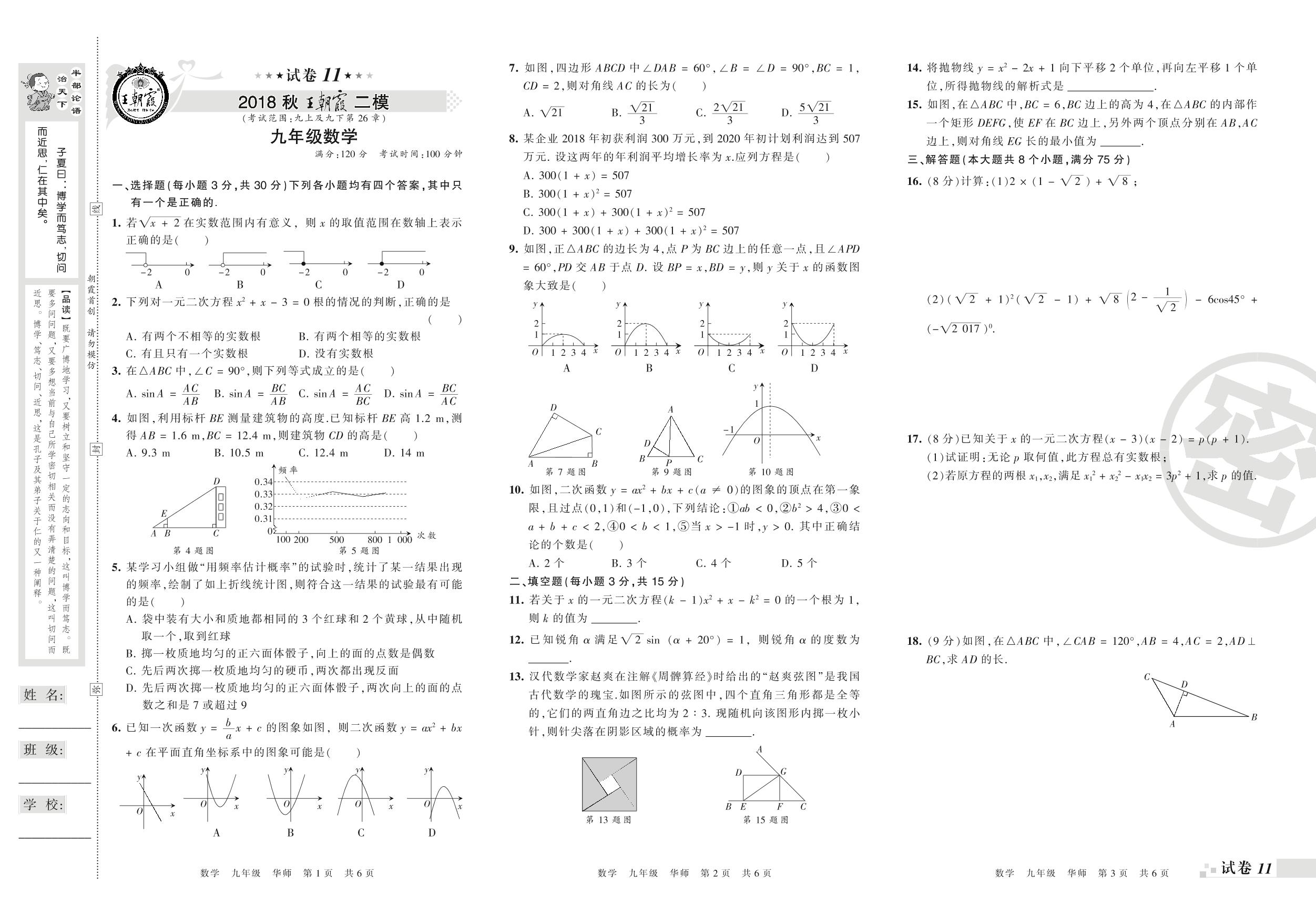 王朝霞期末模拟卷九年级上册数学(华师版)_R210806173406【11】