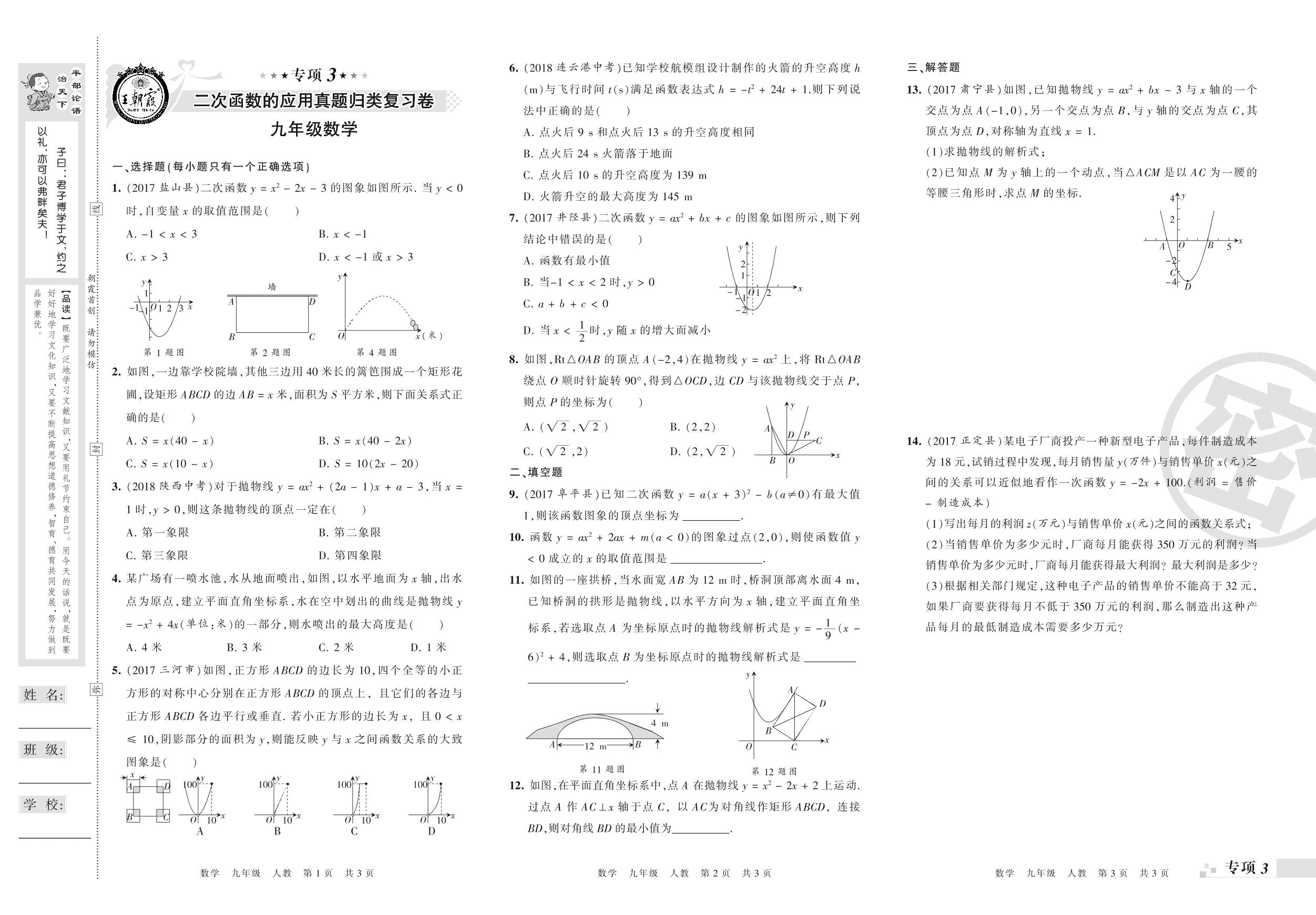 王朝霞期末专项卷——二次函数的应用、旋转真题归类复习九年级上册数学(人教版)_R210806173422【0】