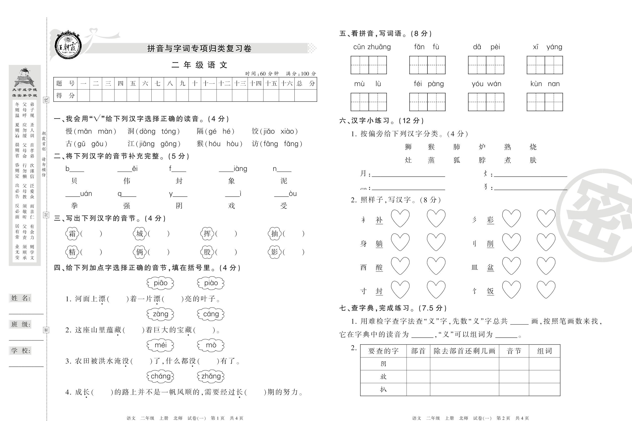 王朝霞期末专项卷二年级上册语文(北师版)_R21080180027【1】