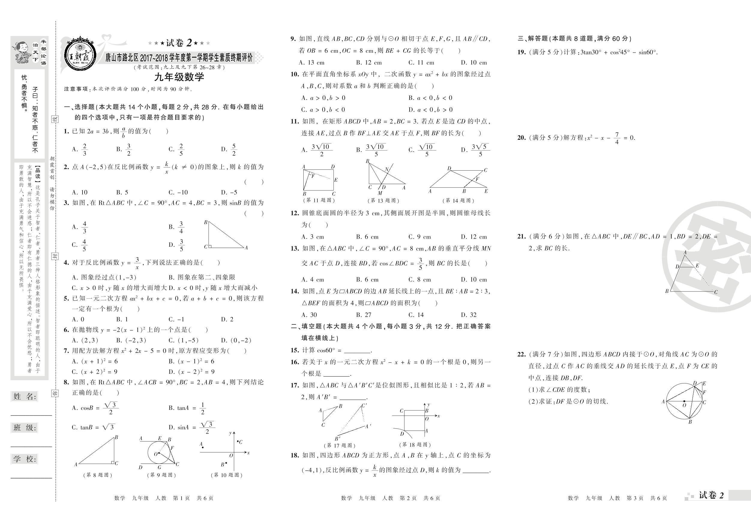 2017-2018学年第一学期唐山市路北区九年级数学试卷(人教版)【2】