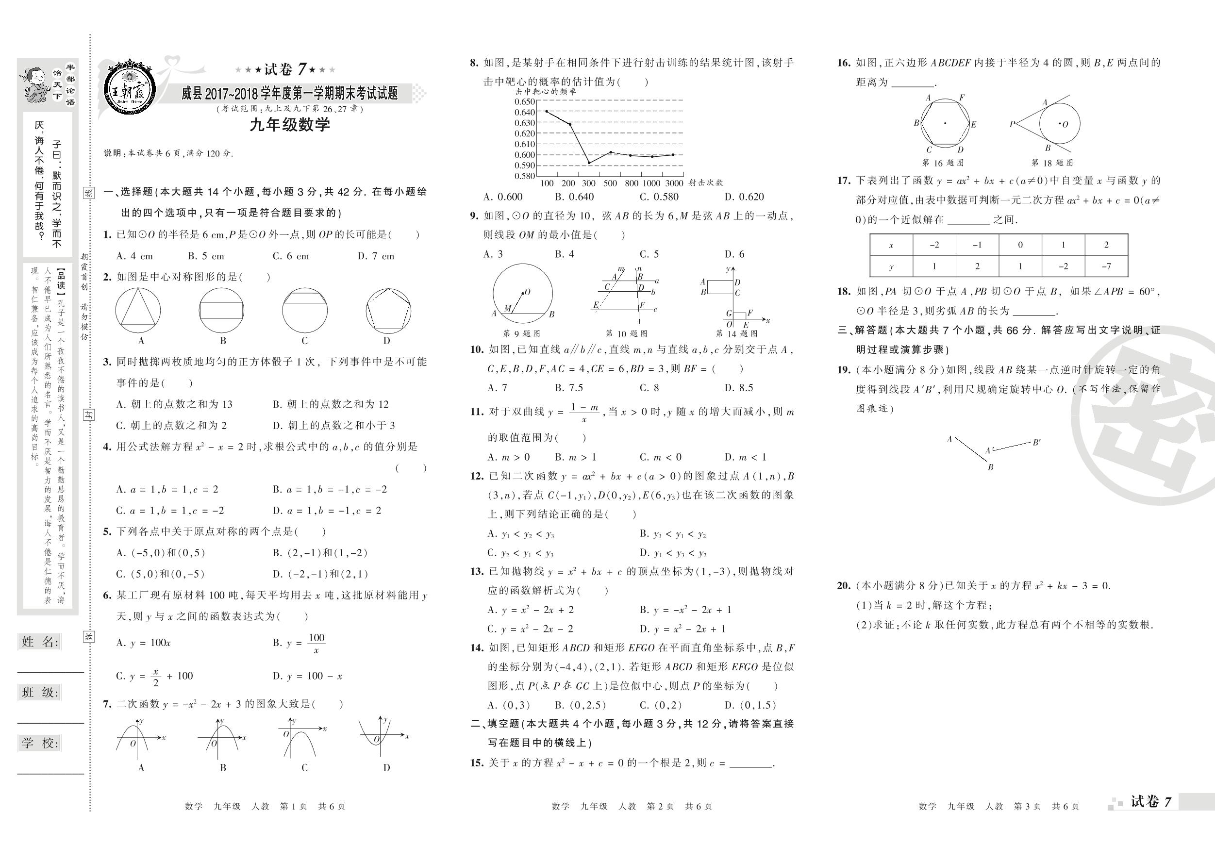 2017-2018学年第一学期邢台市威县九年级数学试卷(人教版)【7】
