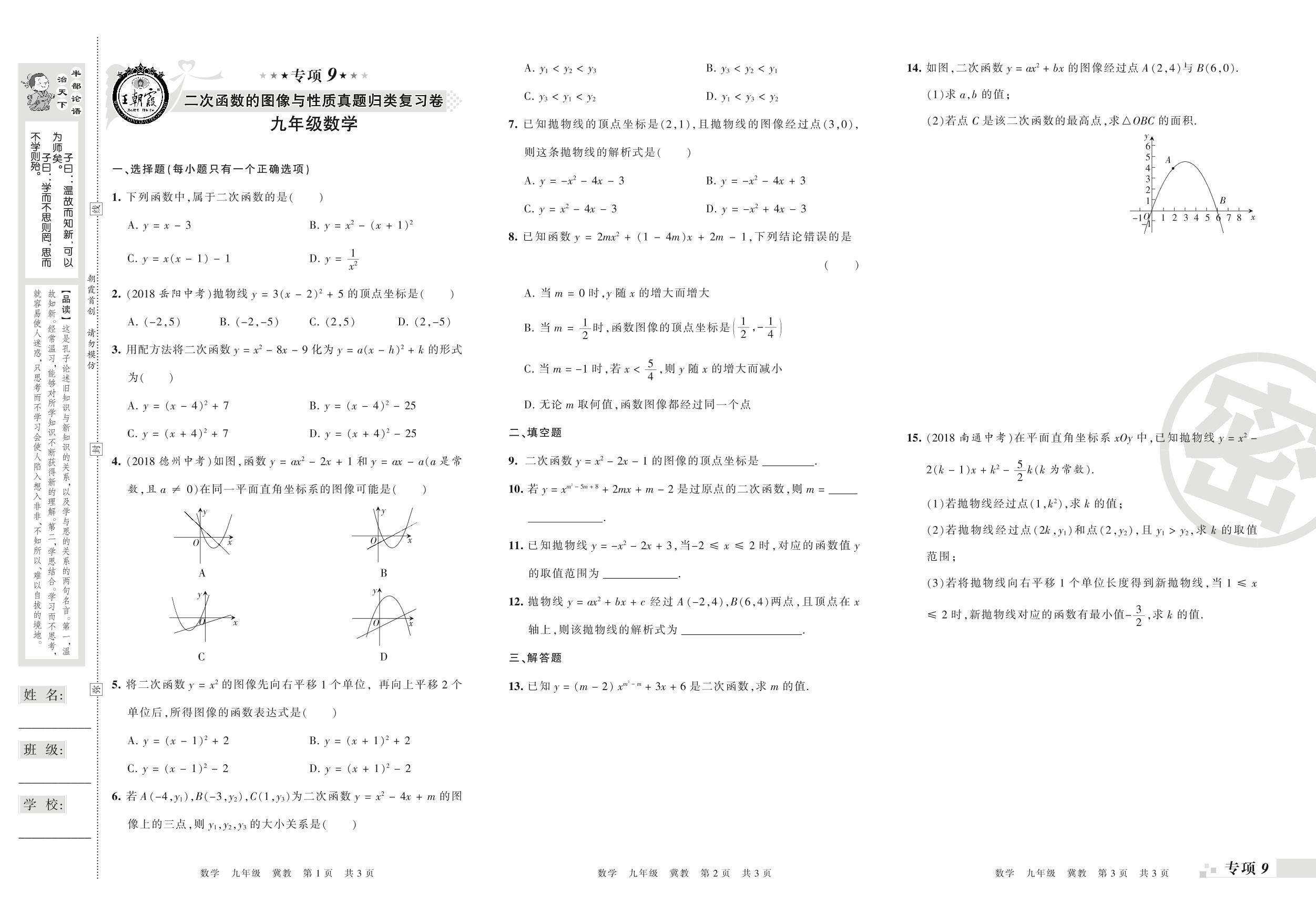 王朝霞期末专项卷——二次函数的图像与性质真题归类复习九年级上册数学(冀教版)_R210806173802【0】
