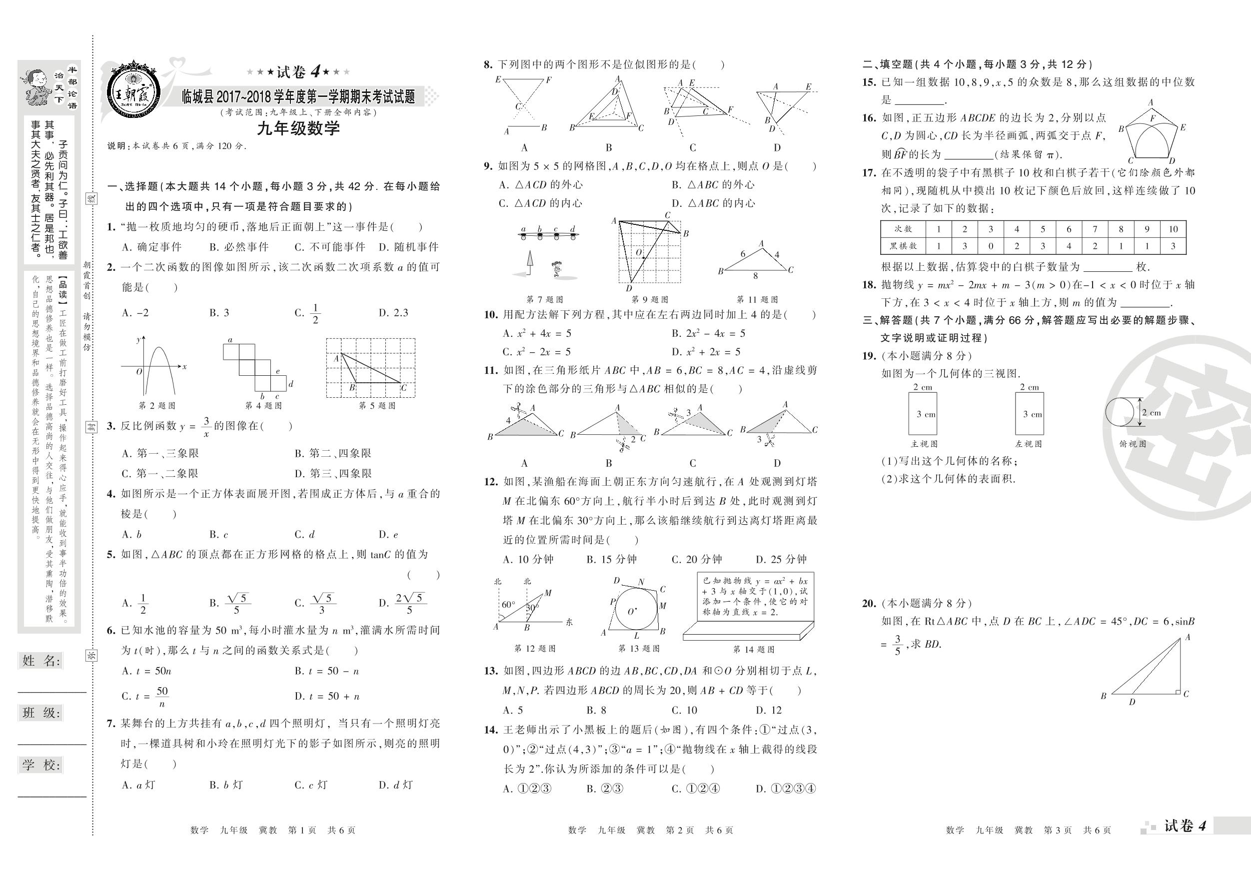 2017-2018学年第一学期邢台市临城县九年级数学试卷(冀教版)【4】