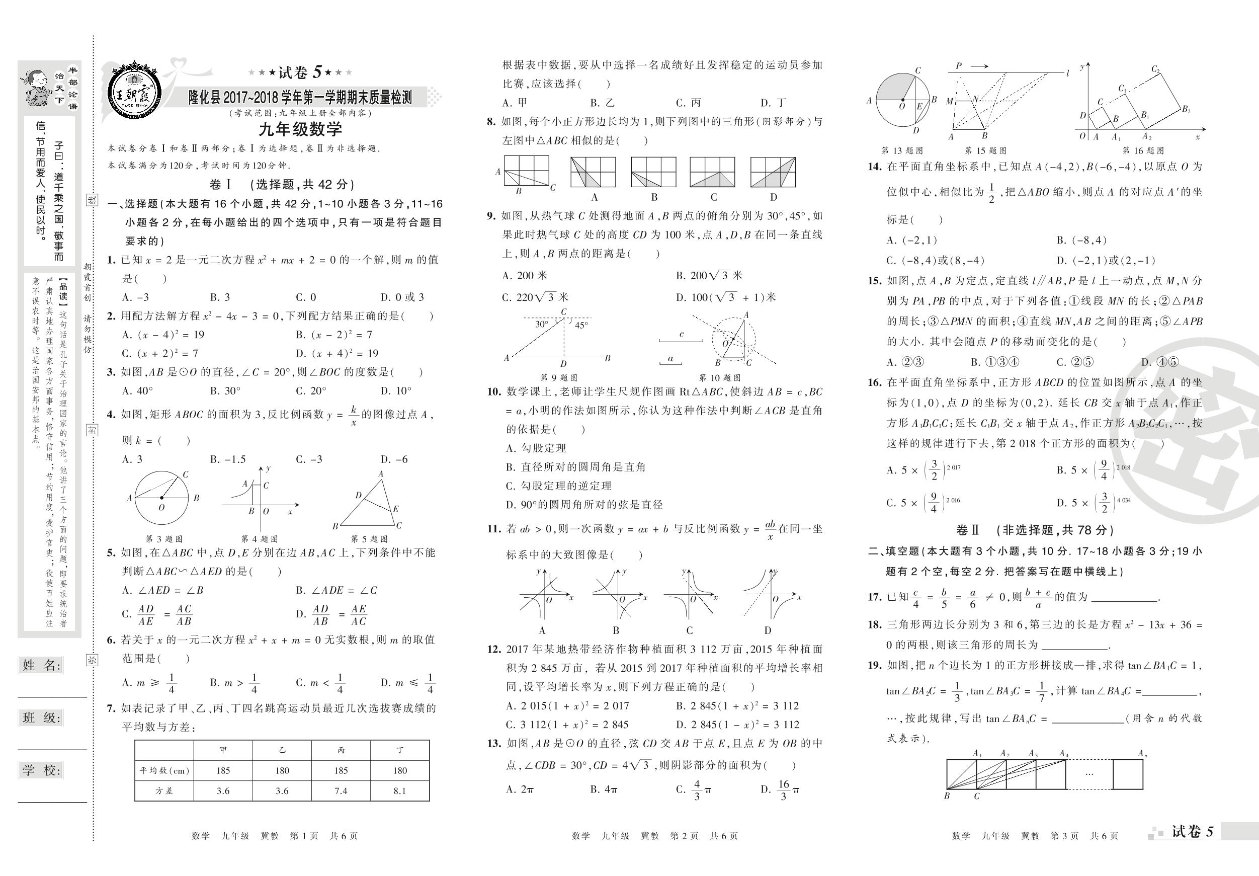 2017-2018学年第一学期承德市隆化县九年级数学试卷(冀教版)【5】