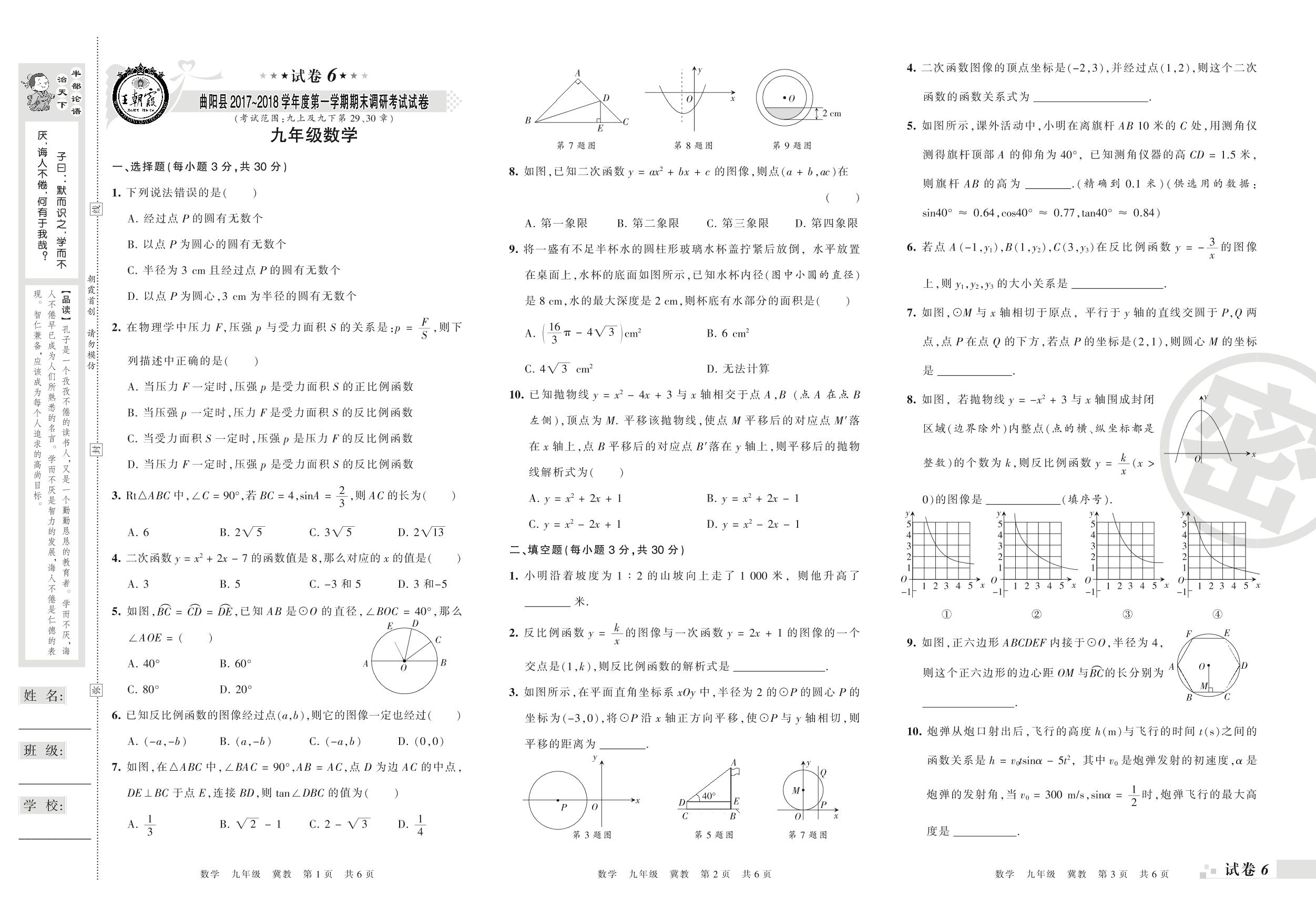 2017-2018学年第一学期保定市曲阳县九年级数学试卷(冀教版)【6】