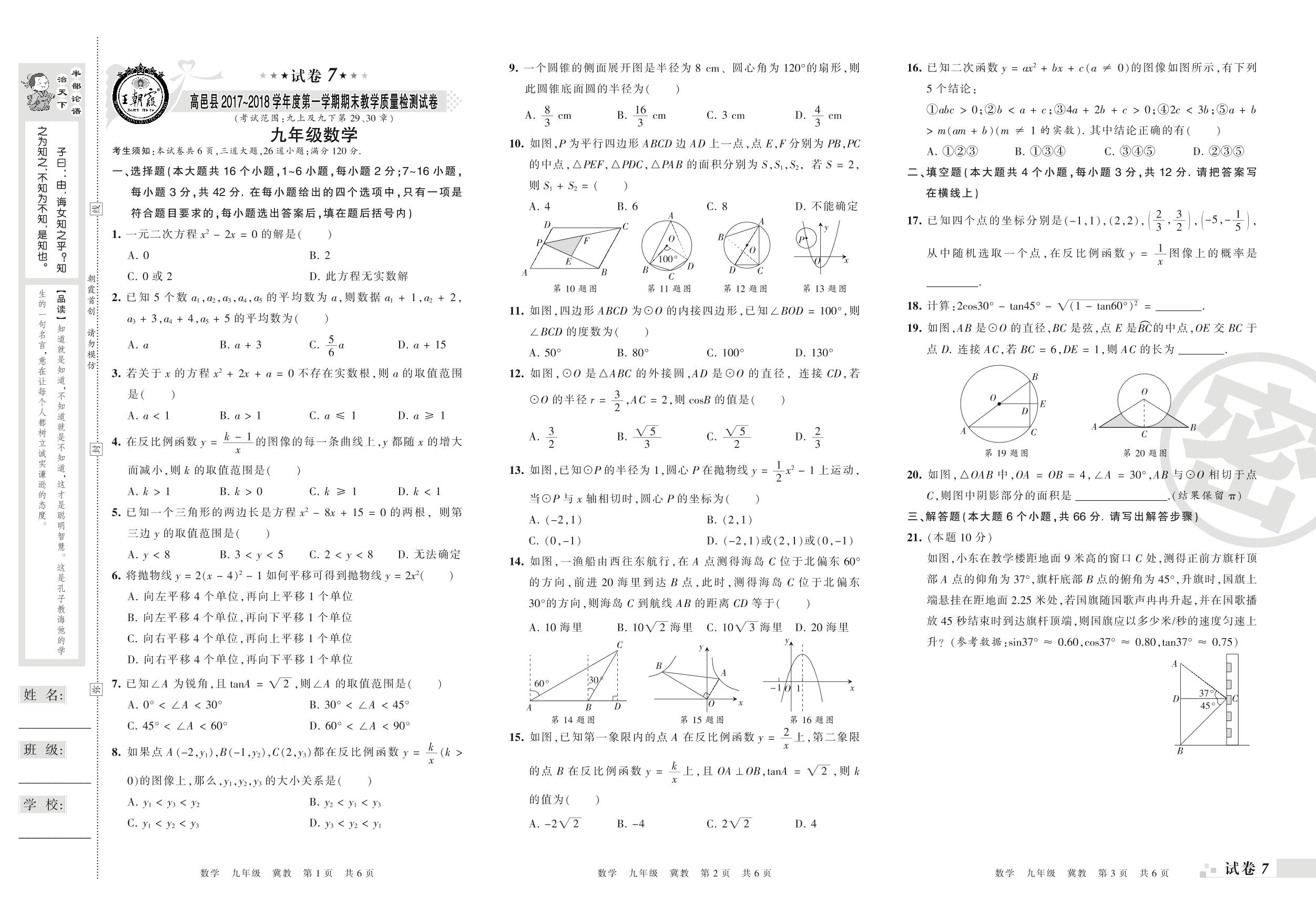 2017-2018学年第一学期石家庄市高邑县九年级数学试卷(冀教版)【7】