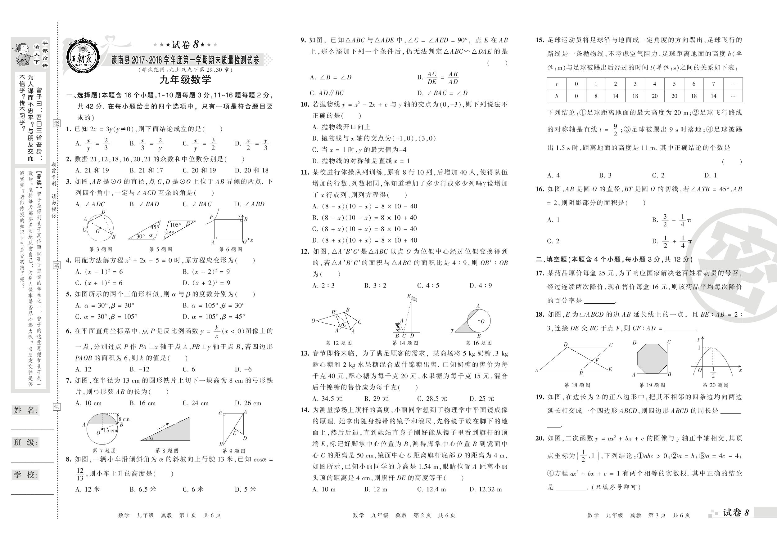 2017-2018学年第一学期唐山市滦南县九年级数学试卷(冀教版)【8】