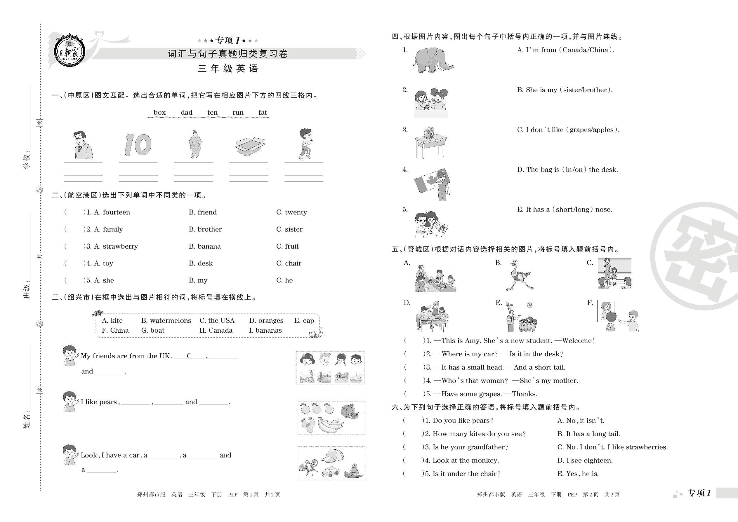 王朝霞期末专项卷——词汇与句子、情景交际真题归类复习三年级下册英语(PEP版)_R210806181714【0】
