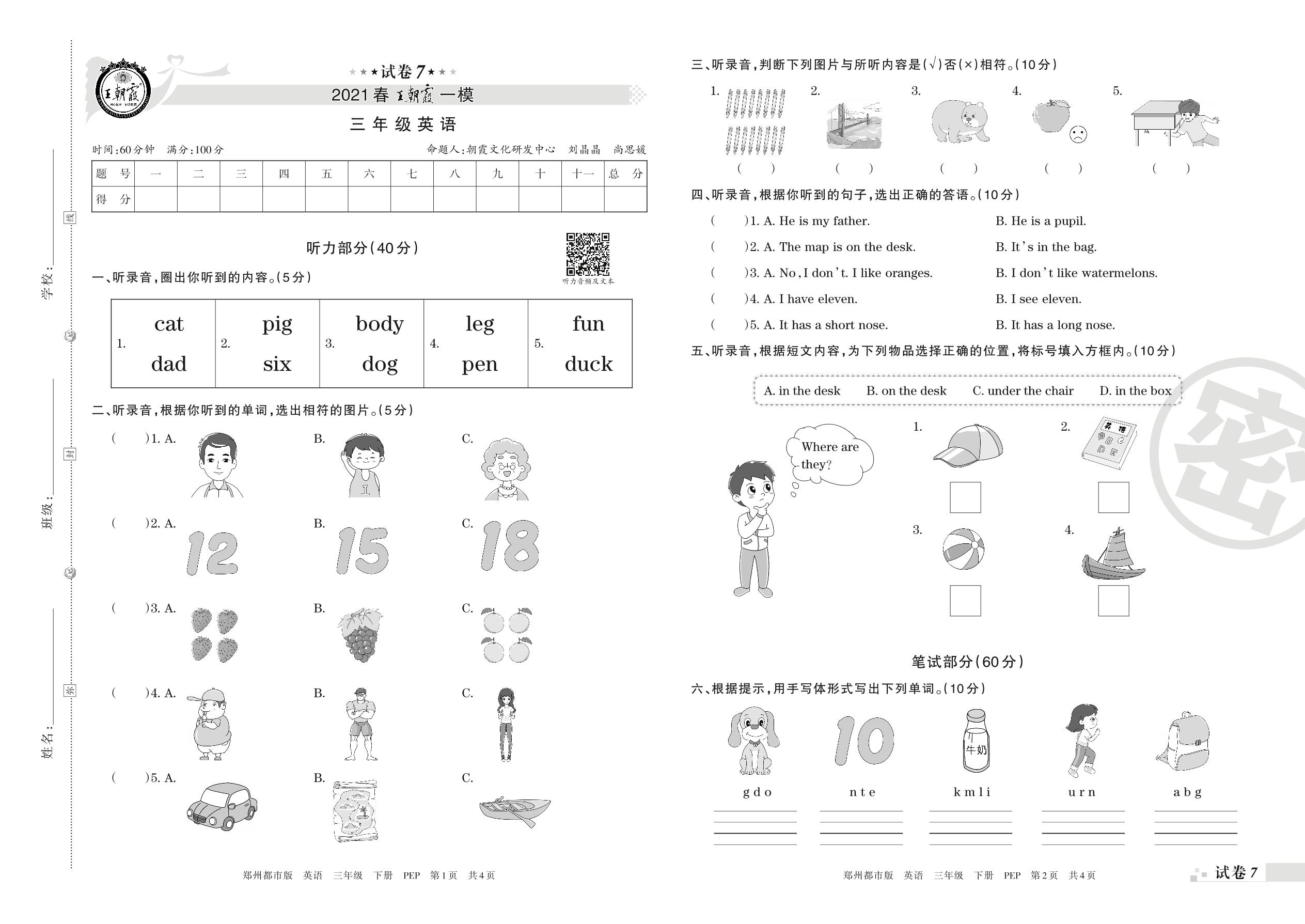 王朝霞期末模拟卷三年级下册英语(PEP版)_R210806181751【7】