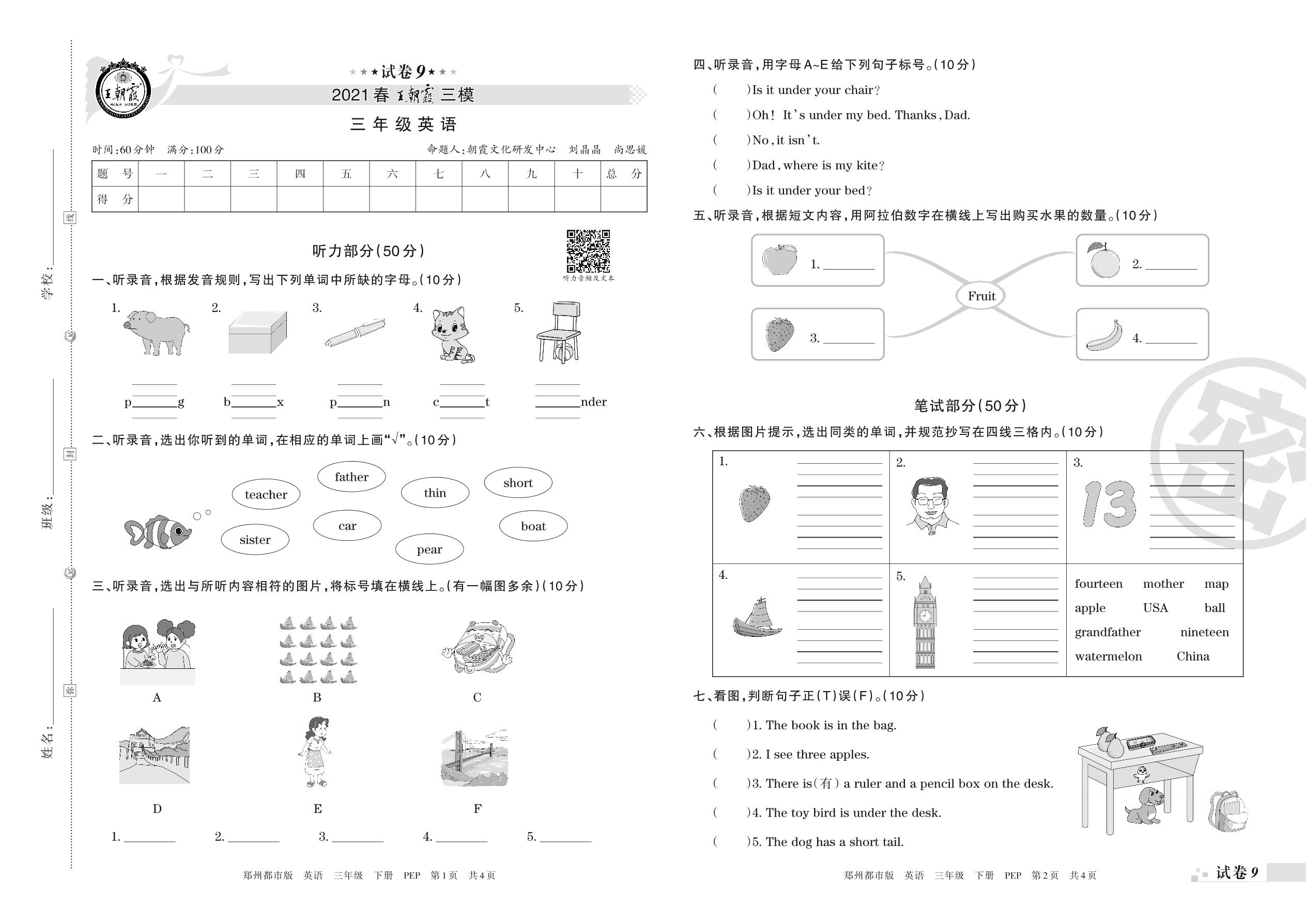 王朝霞期末模拟卷三年级下册英语(PEP版)_R210806181800【9】