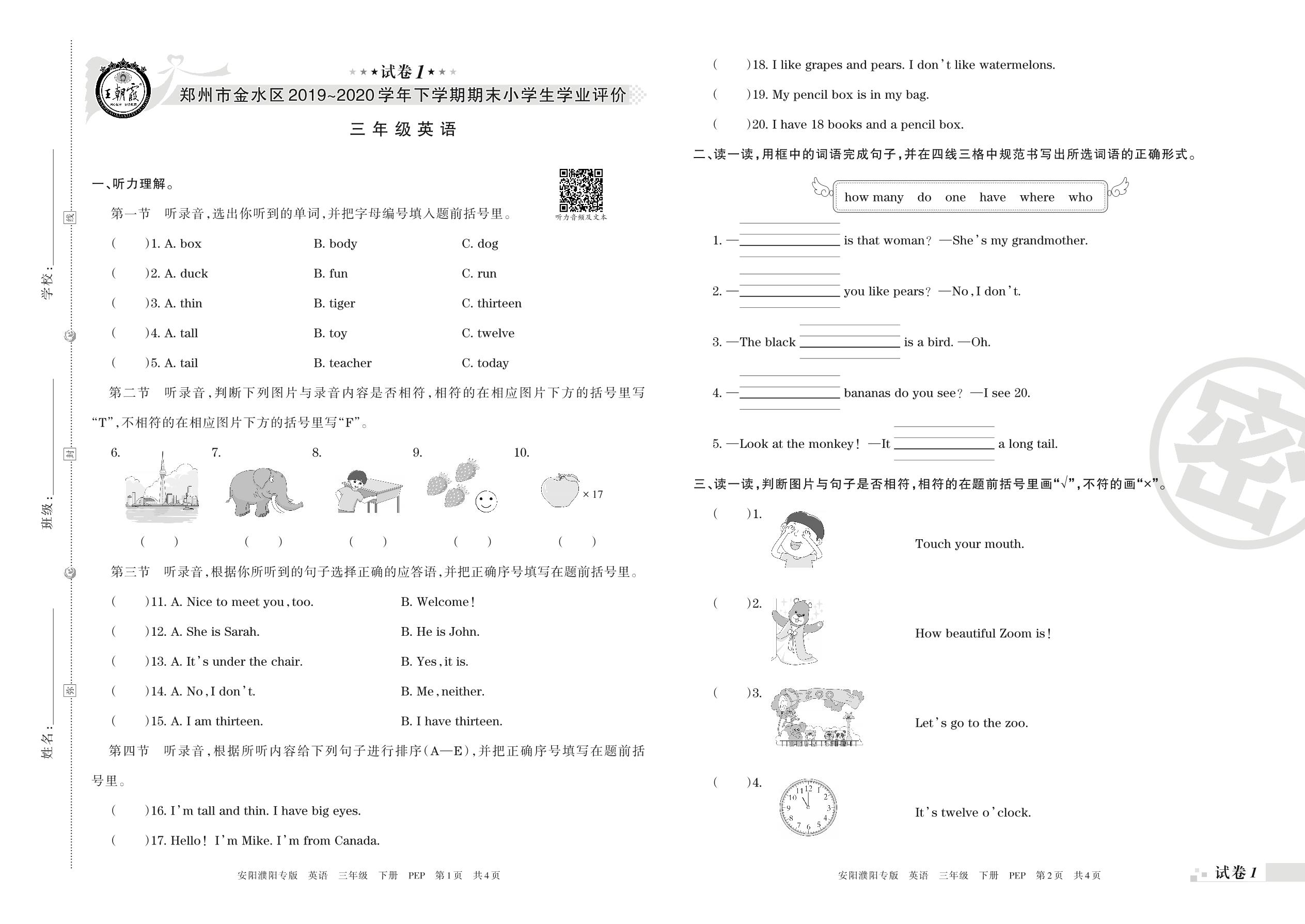 2019-2020学年第二学期郑州市金水区三年级英语试卷(PEP版)_R210806181816【1】