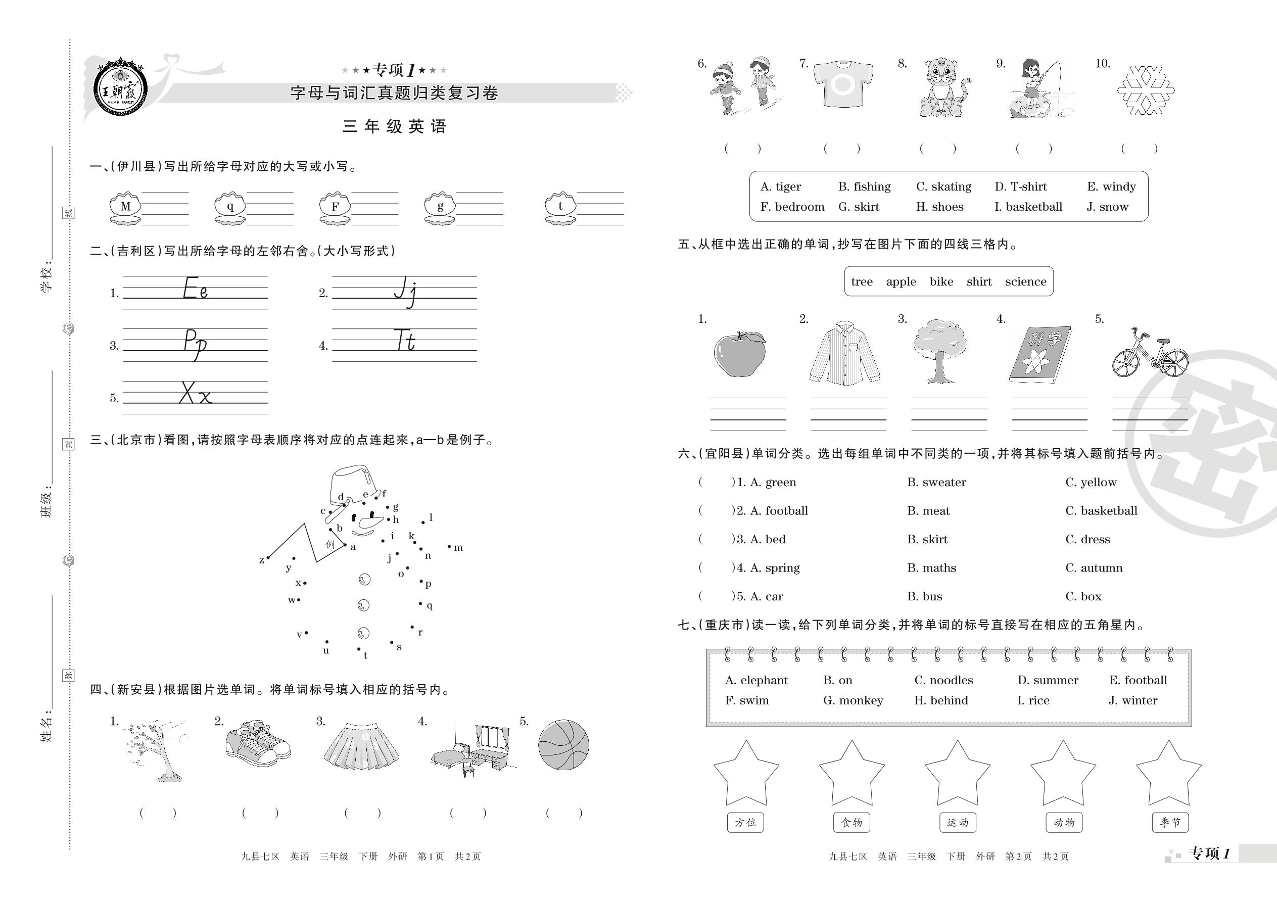 王朝霞期末专项卷——字母与词汇、句子与情景交际真题归类复习三年级下册英语(外研版)_R210806181903【0】