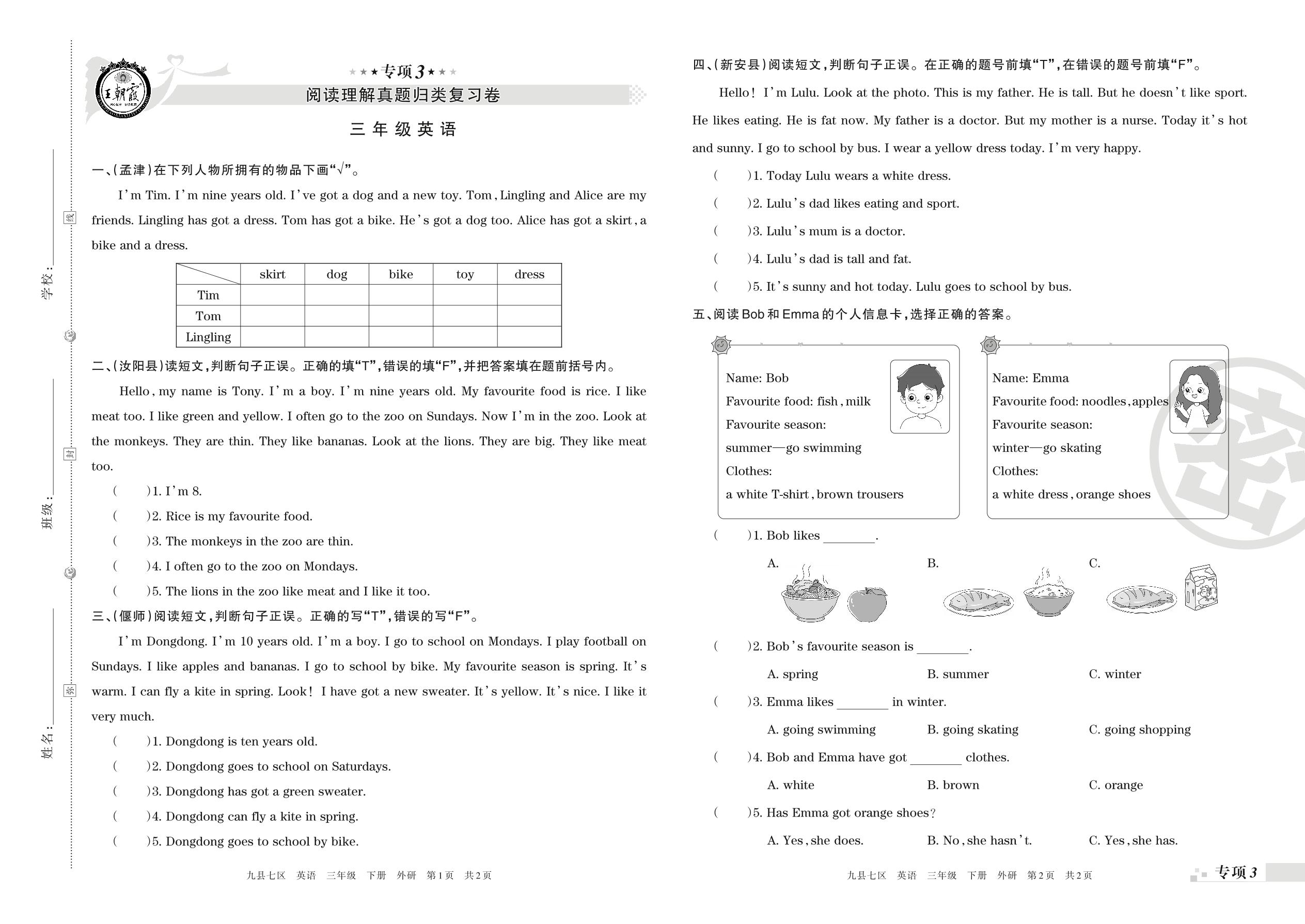王朝霞期末专项卷——阅读理解真题归类复习、新题型三年级下册英语(外研版)_R210806181906【0】