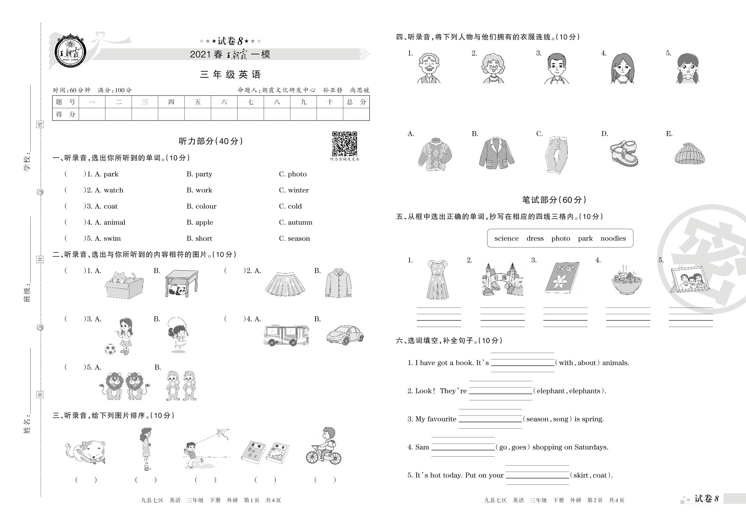 王朝霞期末模拟卷三年级下册英语(外研版)_R210806181940【8】