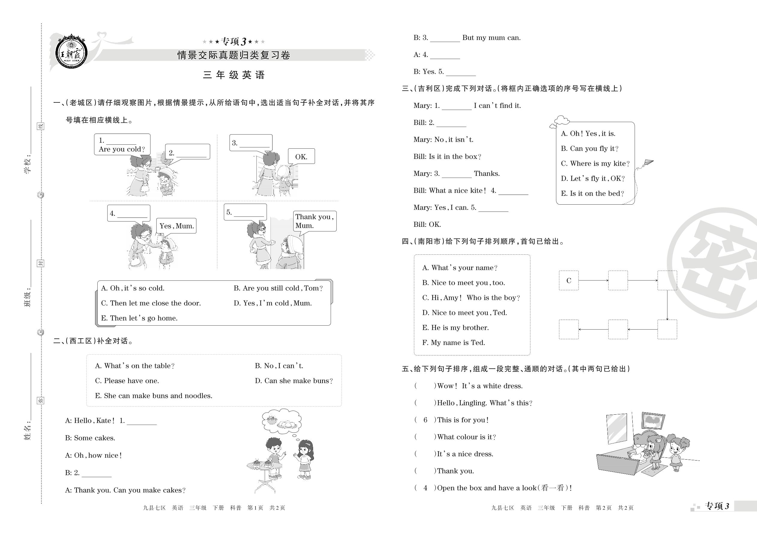 王朝霞期末专项卷——情景交际真题归类复习、阅读理解三年级下册英语(科普版)_R210806182000【0】