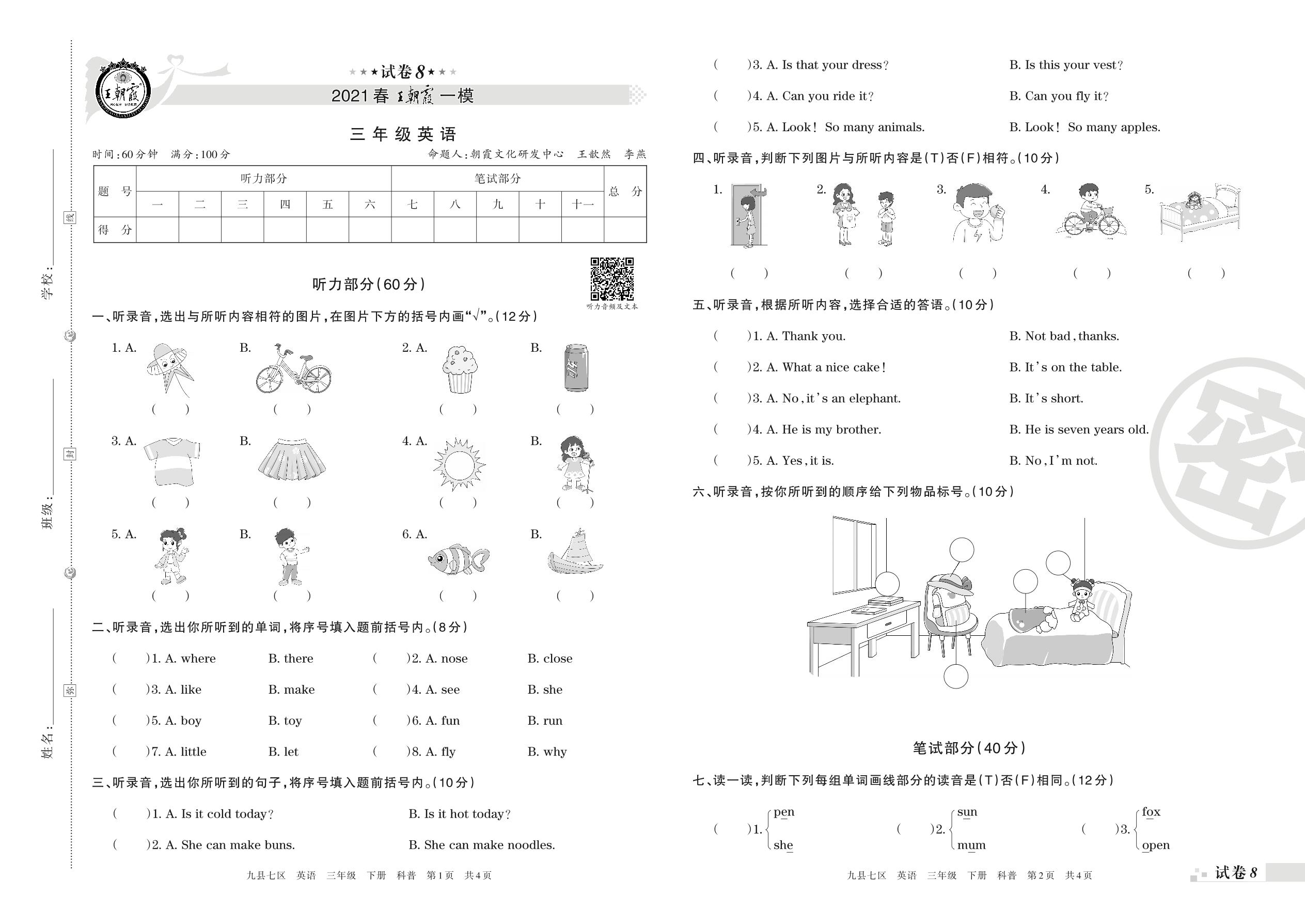 王朝霞期末模拟卷三年级下册英语(科普版)_R210806182036【8】