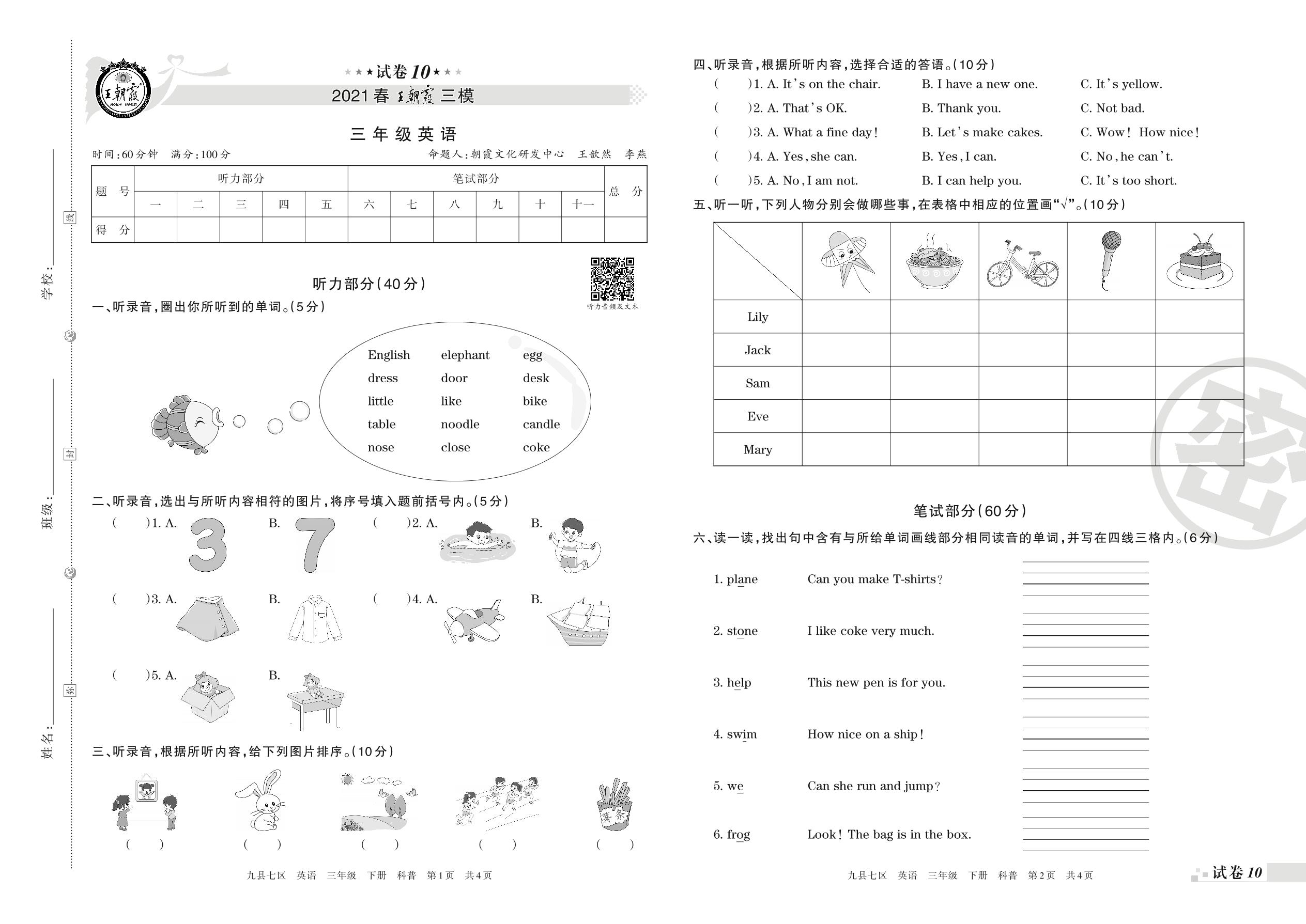 王朝霞期末模拟卷三年级下册英语(科普版)_R210806182046【10】