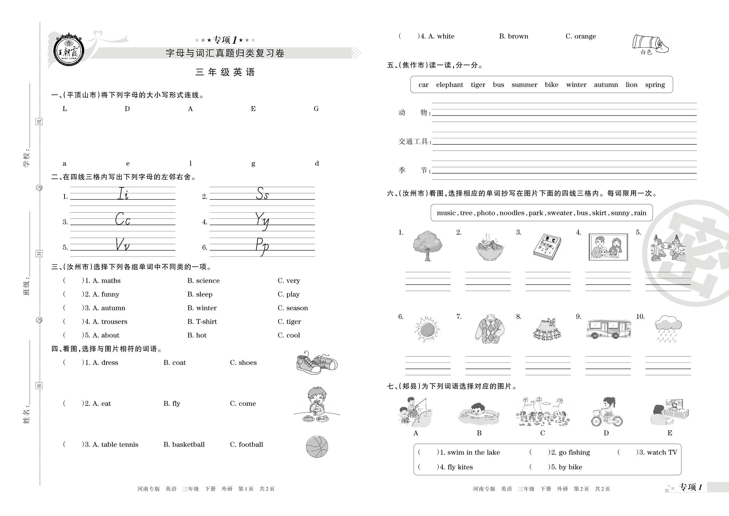 王朝霞期末专项卷——字母与词汇、句子真题归类复习三年级下册英语(外研版)【0】