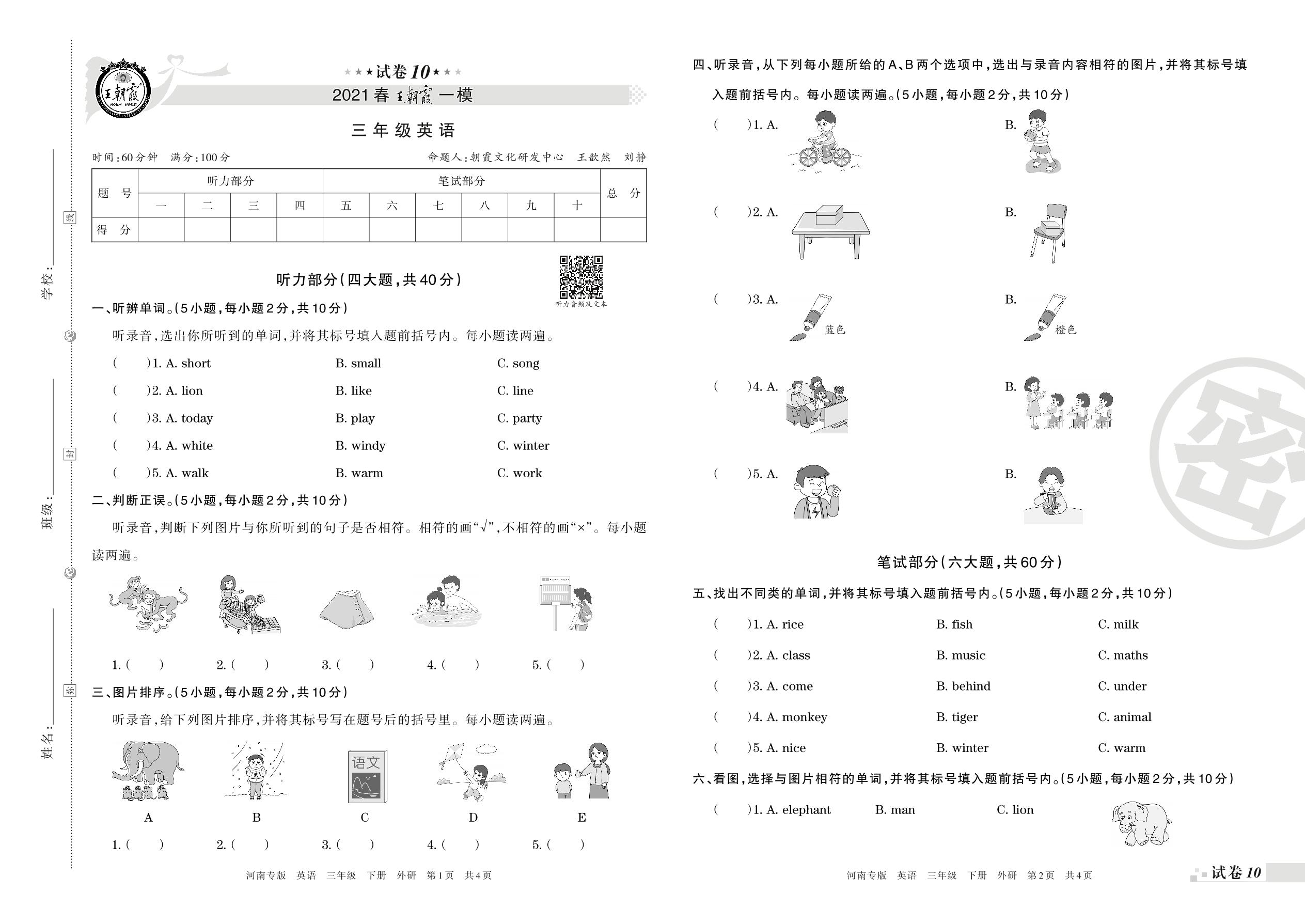 王朝霞期末模拟卷三年级下册英语(外研版)_R210806182336【10】