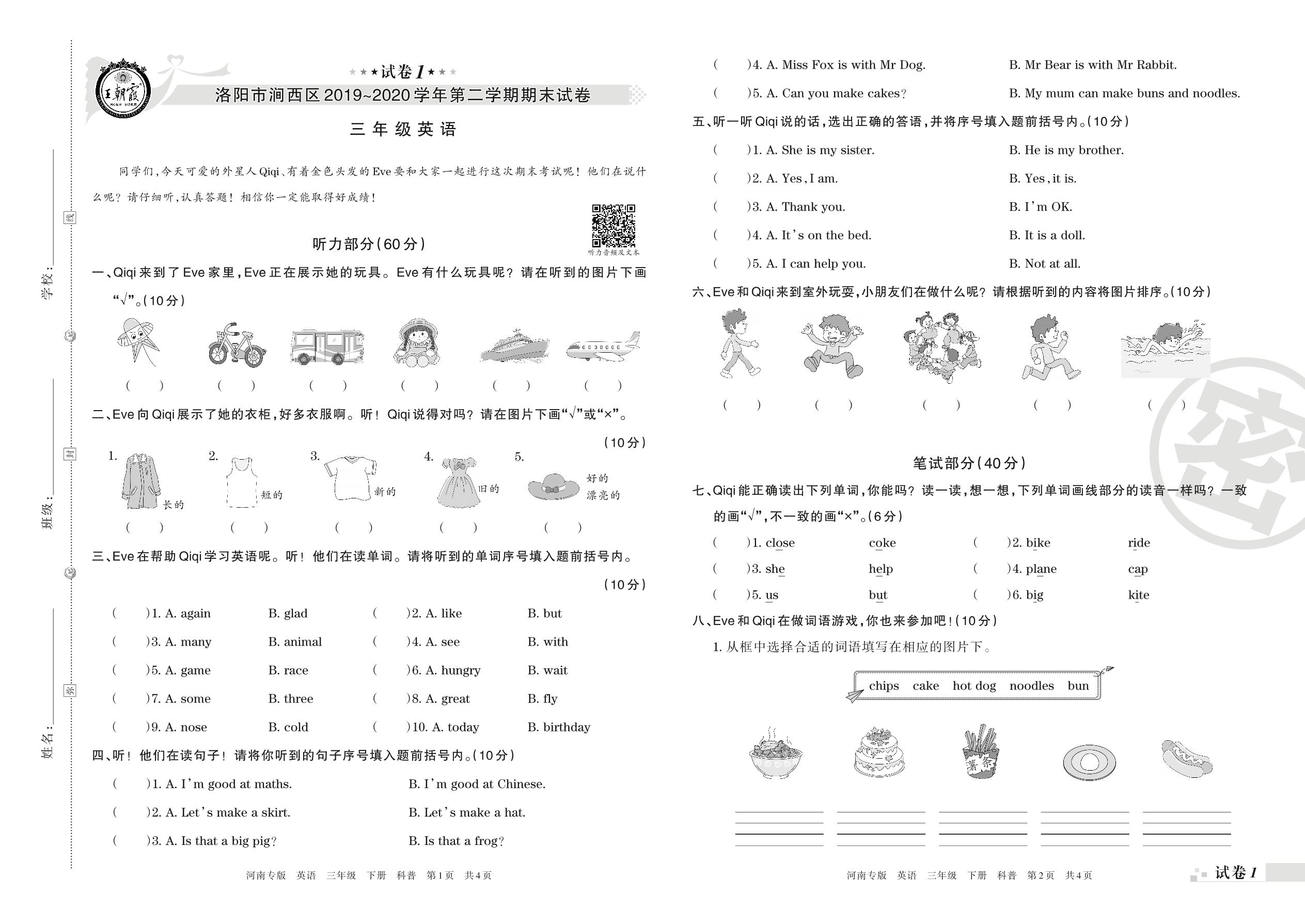 2019-2020学年第二学期洛阳市涧西区三年级英语试卷(科普版)_R210806182405【1】