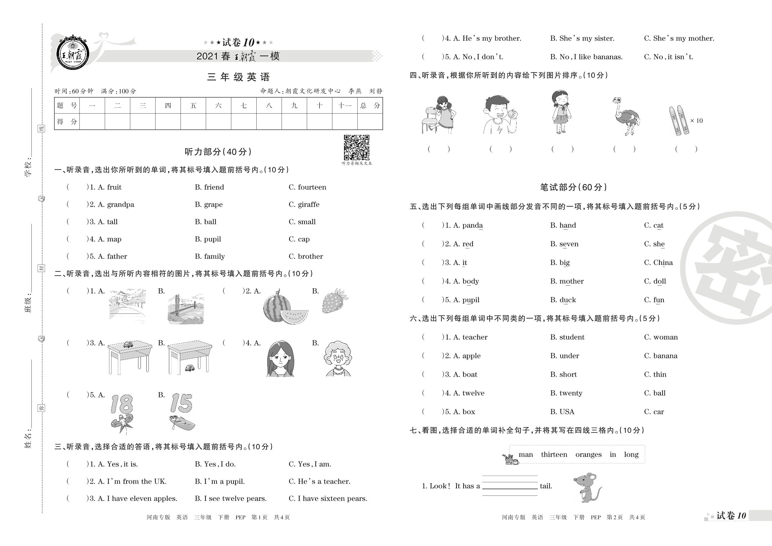 王朝霞期末模拟卷三年级下册英语(PEP版)_R210806182557【10】