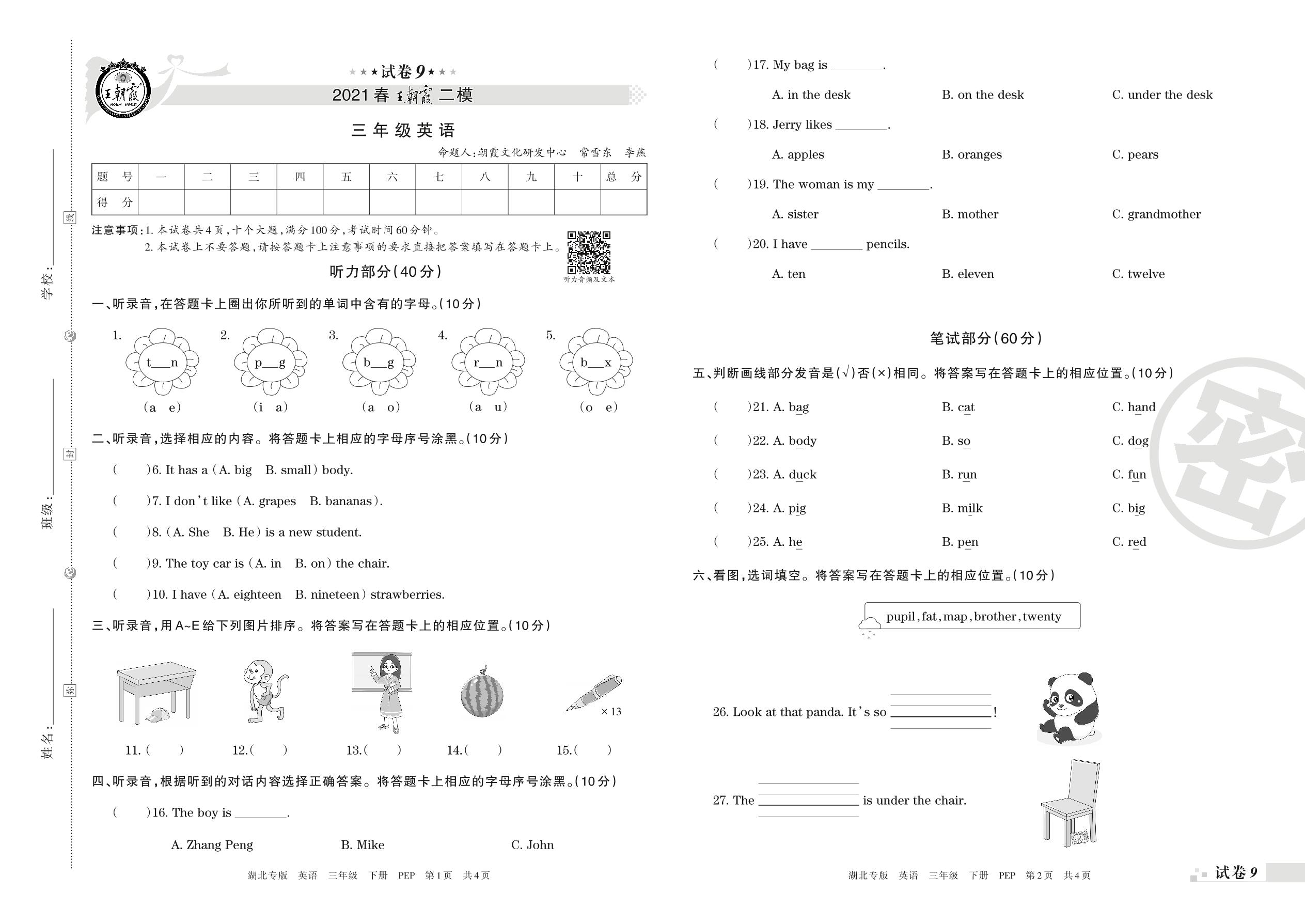 王朝霞期末模拟卷三年级下册英语(PEP版)_R210806182824【9】