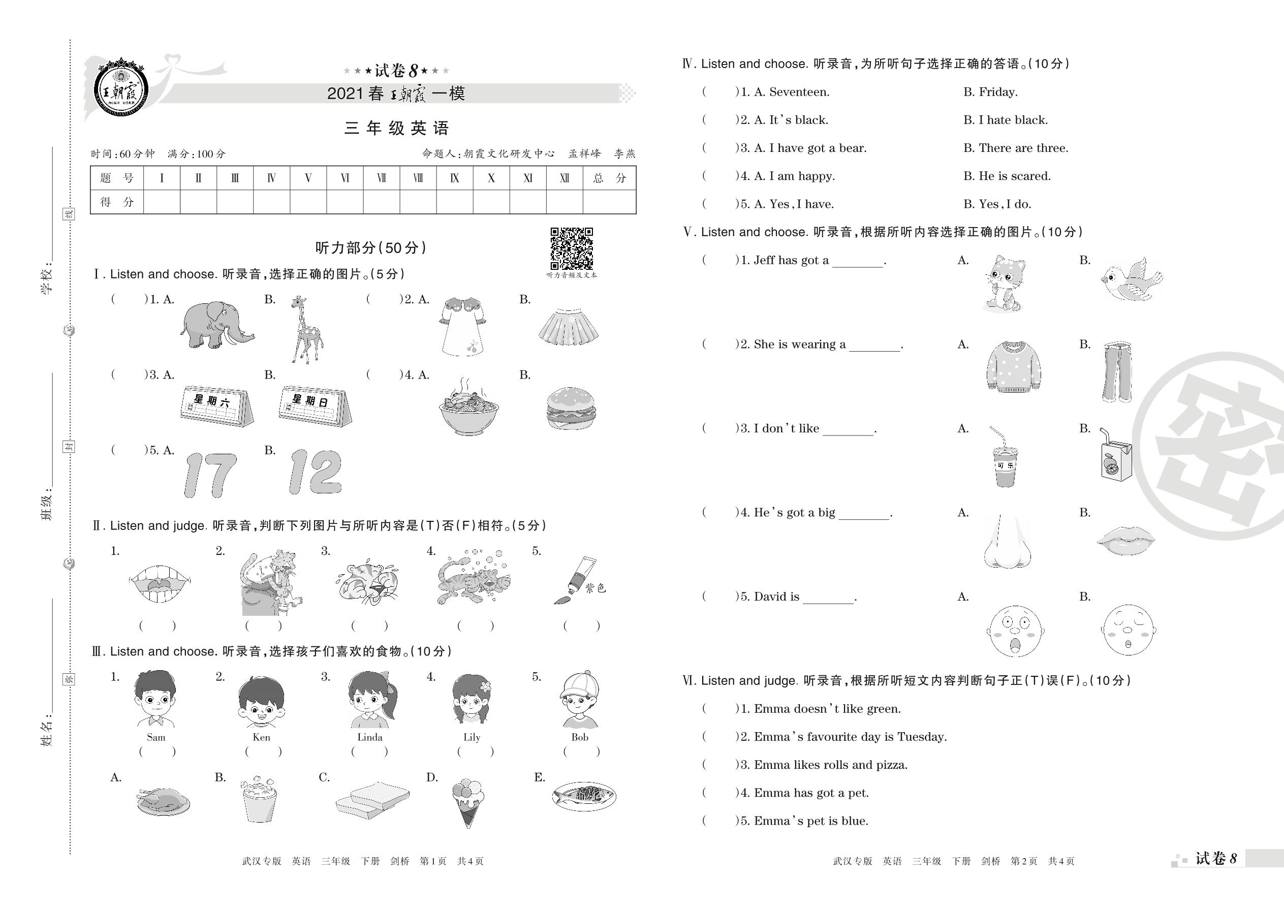 王朝霞期末模拟卷三年级下册英语(剑桥版)_R210806182908【8】