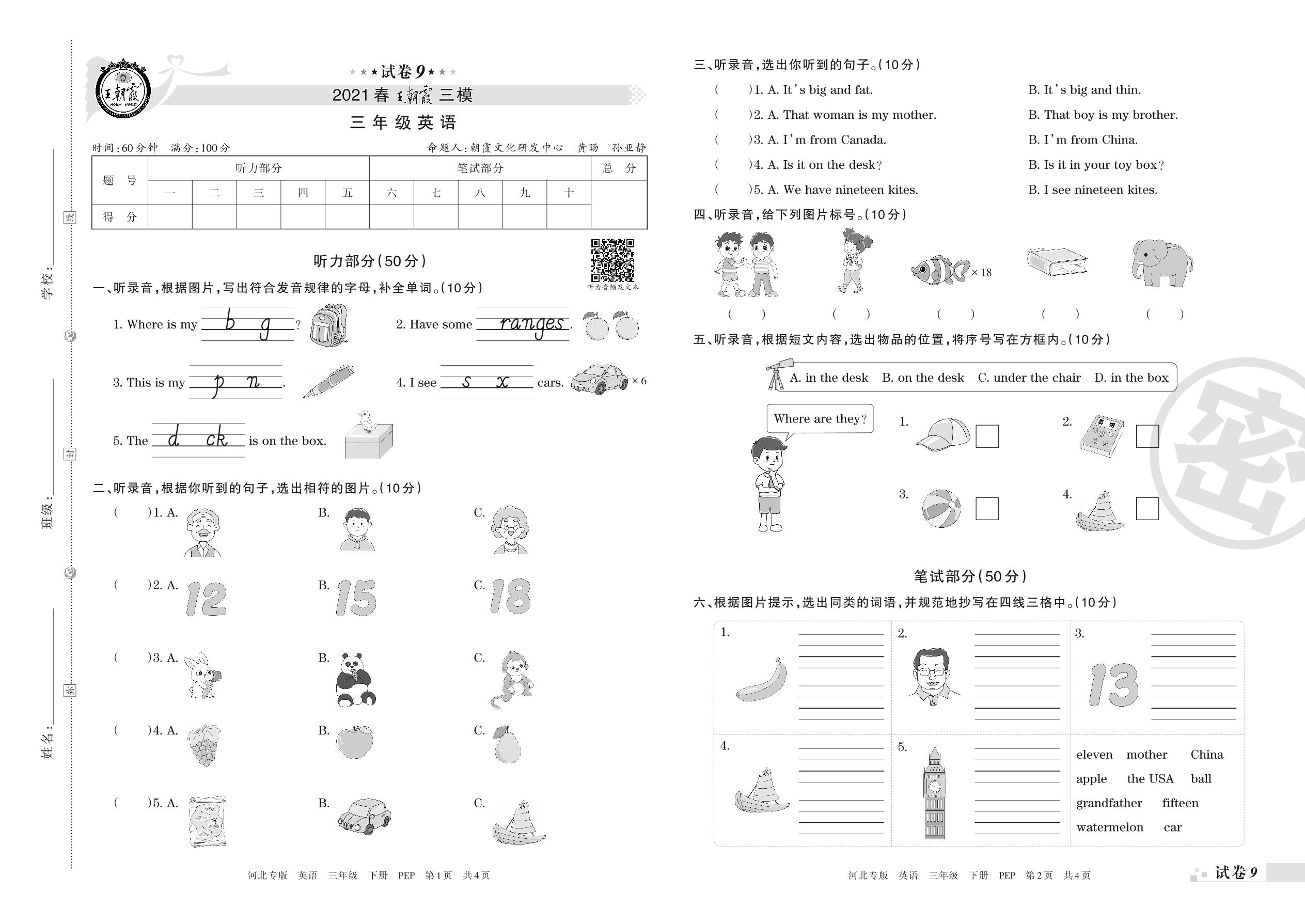 王朝霞期末模拟卷三年级下册英语(PEP版)_R210806183026【9】