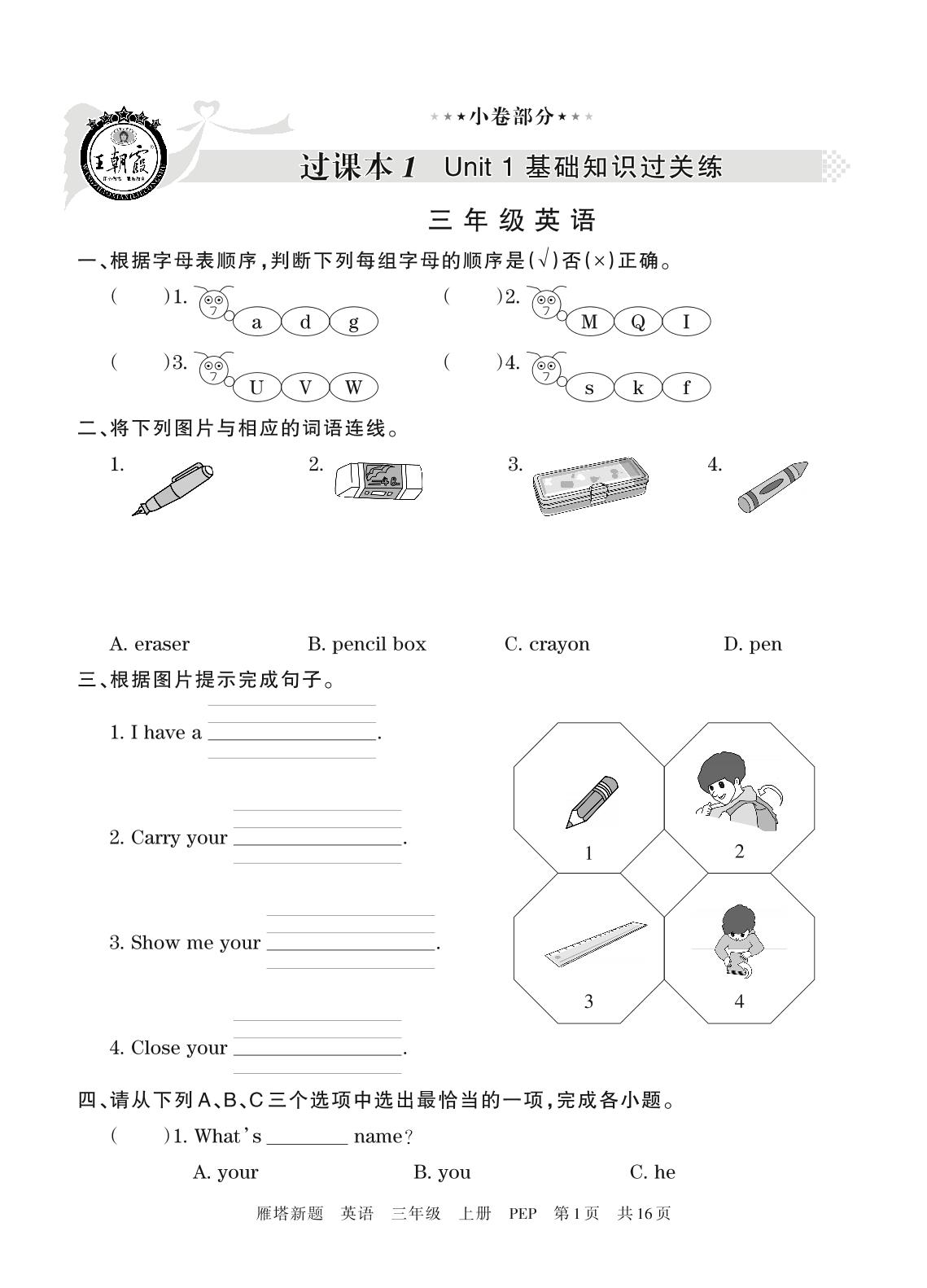 三年级英语人教PEP版(三起始)上册过课本