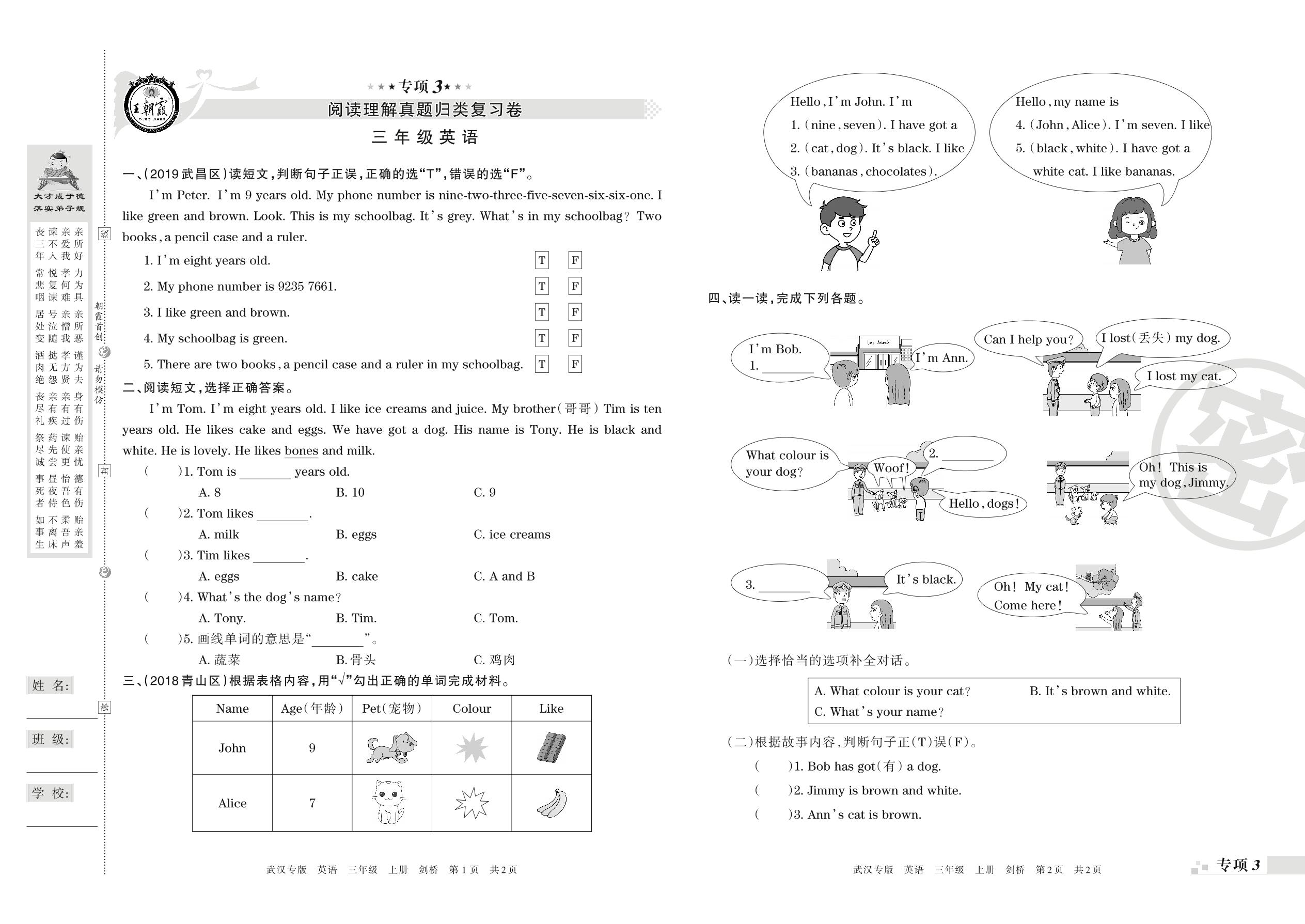 王朝霞期末专项卷——阅读理解真题归类复习、绘本阅读三年级上册英语(剑桥版)