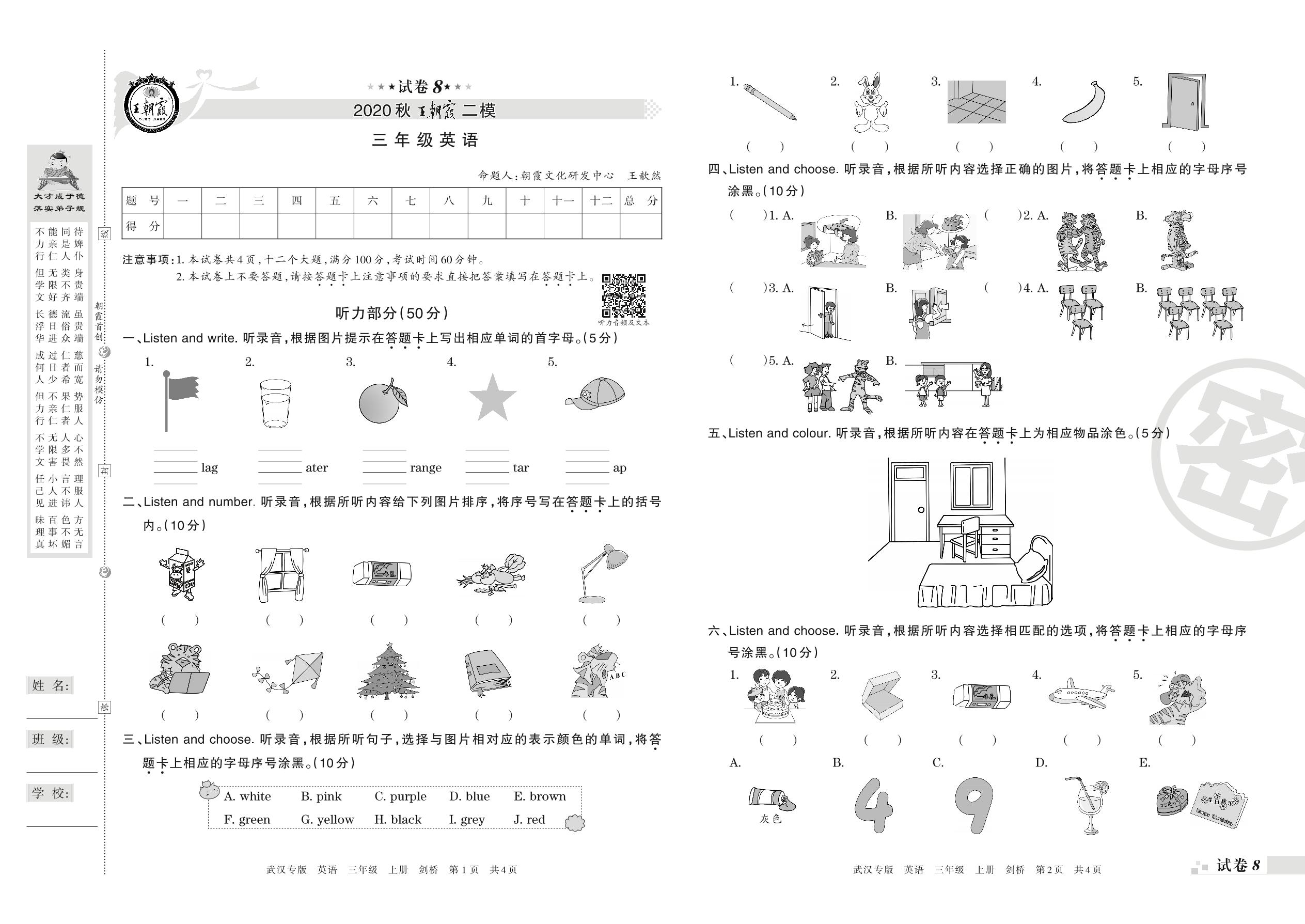 王朝霞期末模拟卷三年级上册英语(剑桥版)_R210806183219【8】
