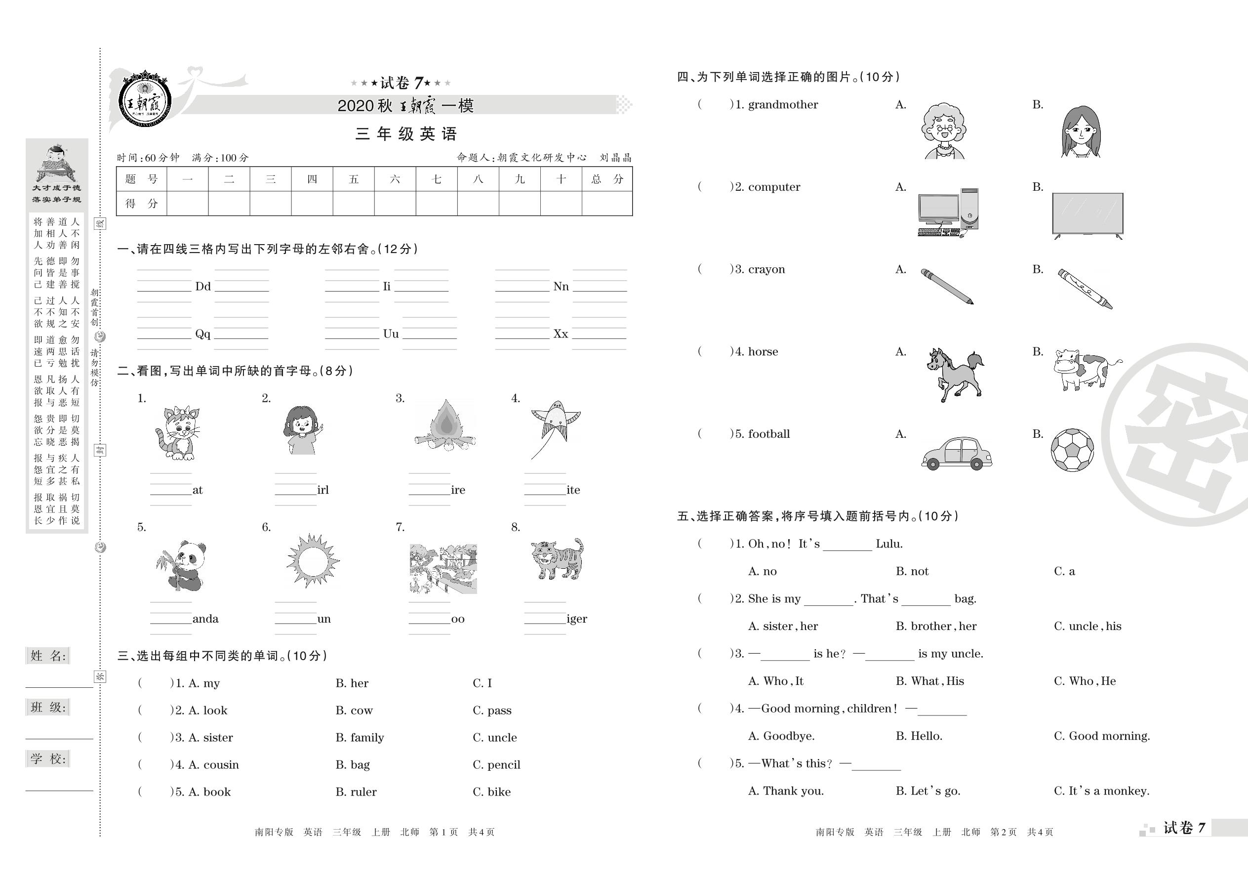 王朝霞期末模拟卷三年级上册英语(北师版)_R210806183414【7】