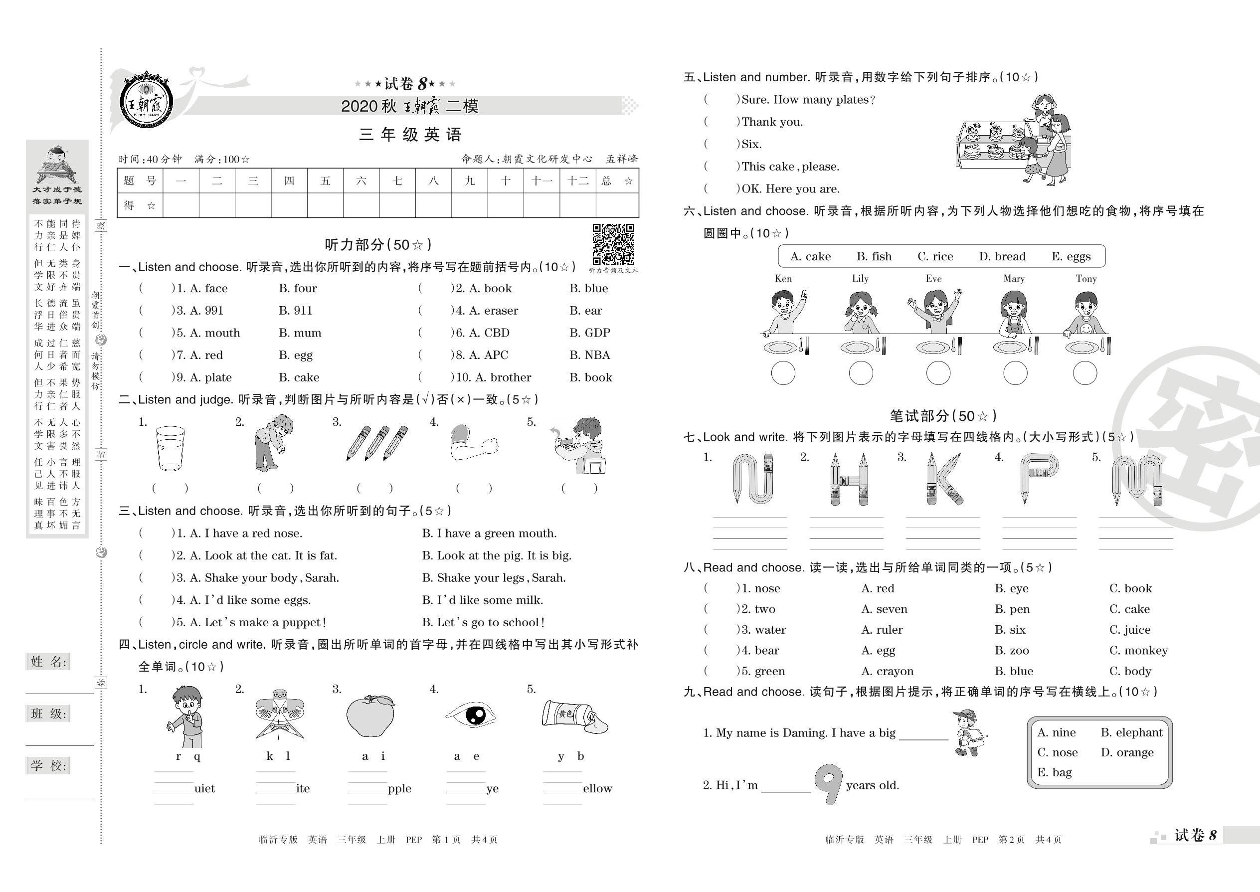 王朝霞期末模拟卷三年级上册英语(PEP版)_R210806183506【8】