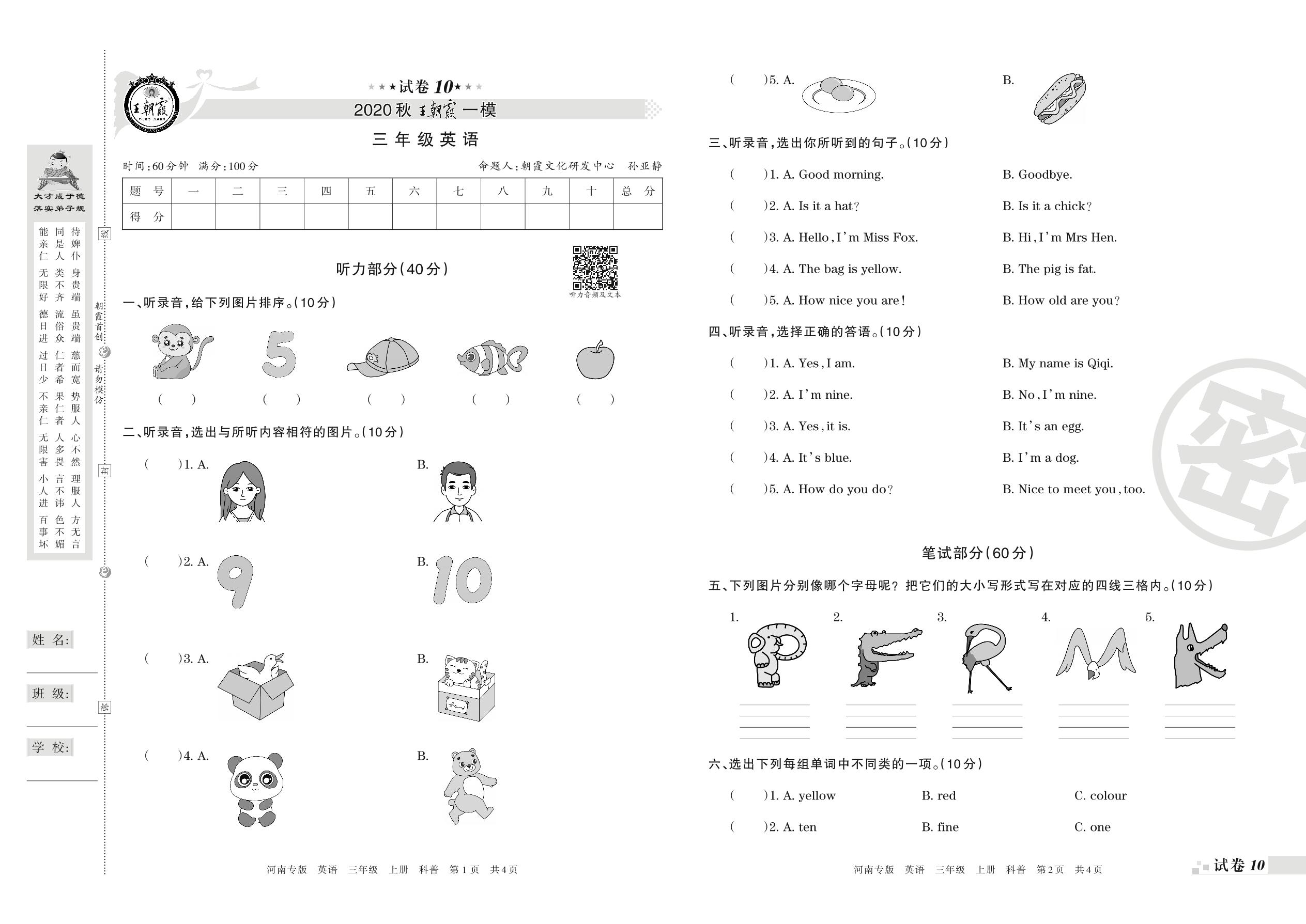 王朝霞期末模拟卷三年级上册英语(科普版)_R210806183606【10】