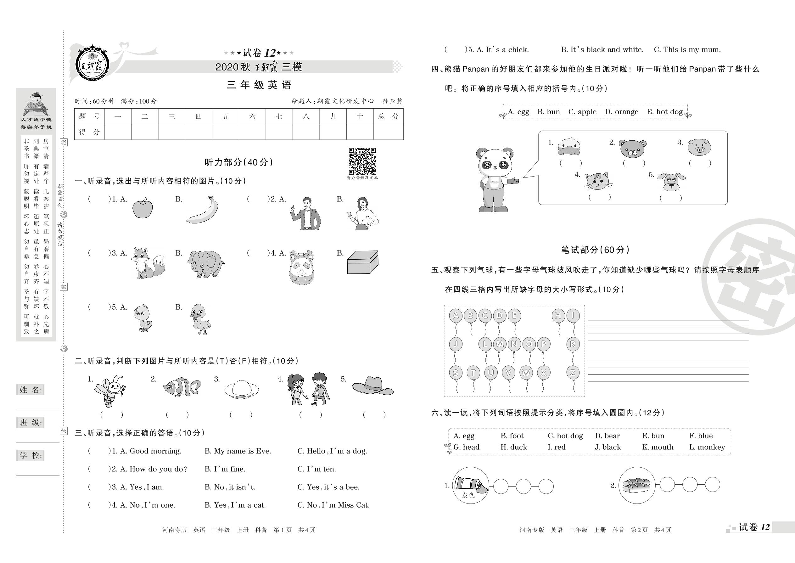 王朝霞期末模拟卷三年级上册英语(科普版)_R210806183613【12】