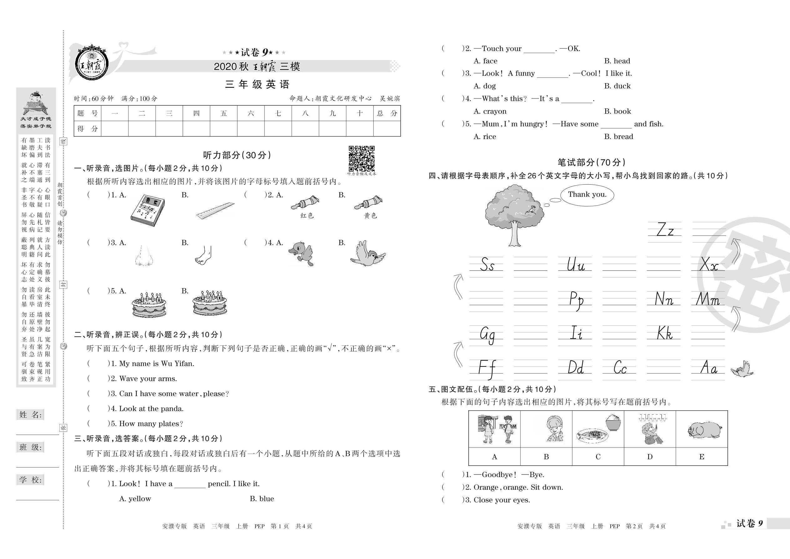 王朝霞期末模拟卷三年级上册英语(PEP版)_R210806183708【9】
