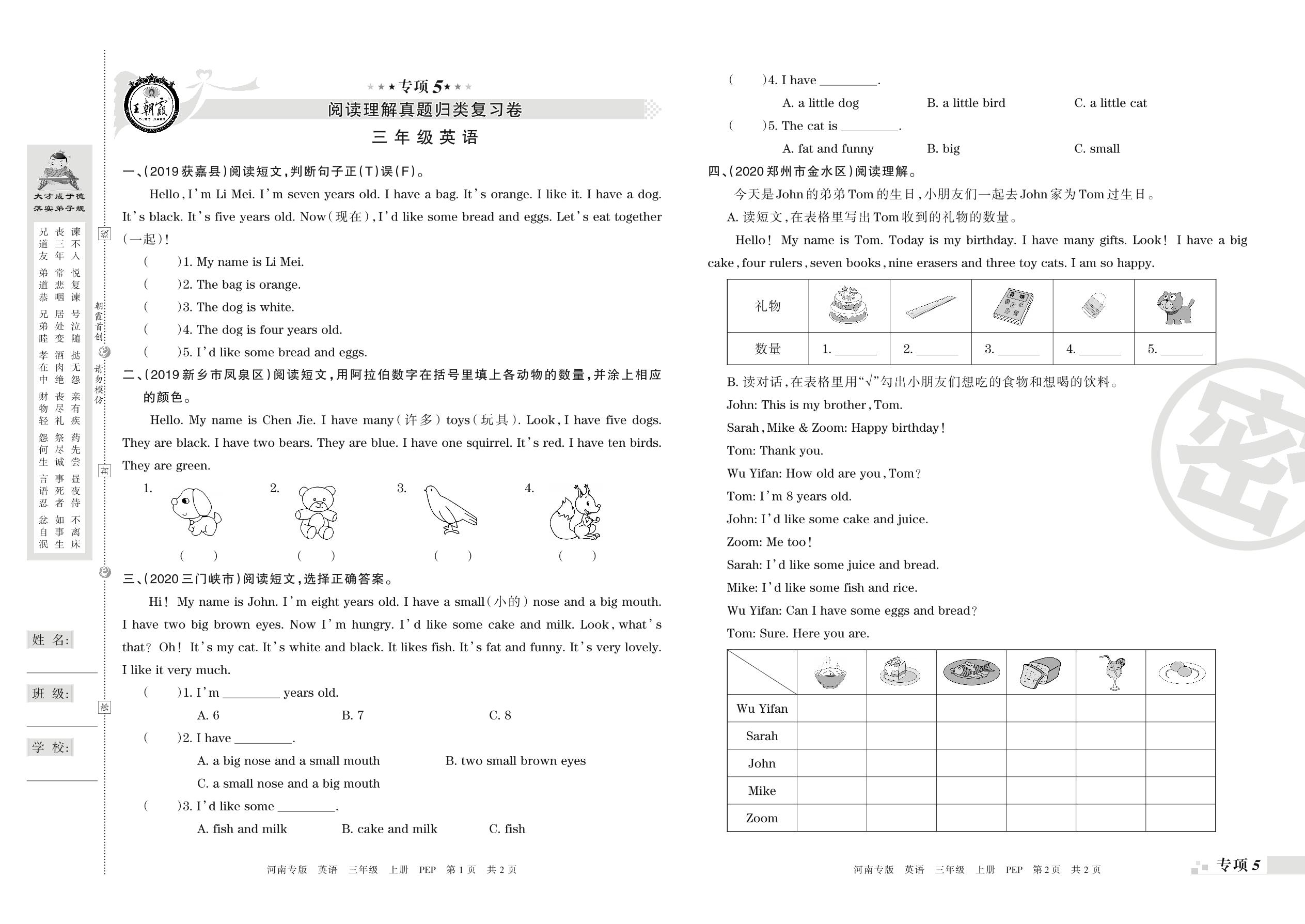王朝霞期末专项卷——阅读理解真题归类复习、绘本阅读三年级上册英语(PEP版)_R210806183719【0】